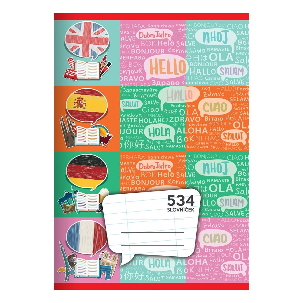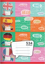 Praktična školska bilježnica formata A5 s 30 listova za učenje jezika. Sadrži crte razmaka 8 mm i 2 okomite osi za stranu riječ i njezin izgovor. Idealna za školu i samostalno učenje, dostupna u više varijanti. Cijena je za 1 komad.