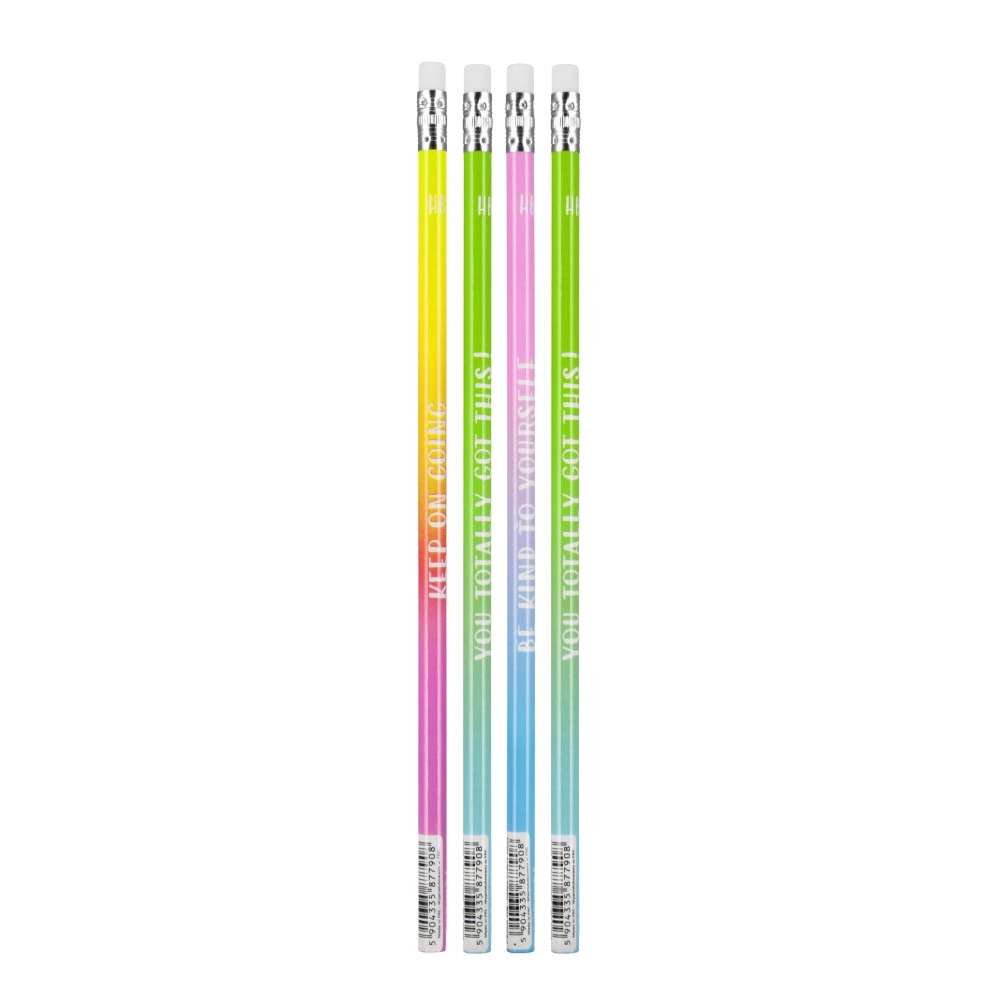 Otkrijte šarene olovke s integriranom gumicom u modernoj ombre izvedbi koje osvajaju na prvi pogled. Zahvaljujući duljini od 19 cm dobro leže u ruci i izvrsne su za pisanje, crtanje i bilješke u školi ili uredu. Svaka olovka ima gumicu na kraju za brzo i čisto brisanje.
