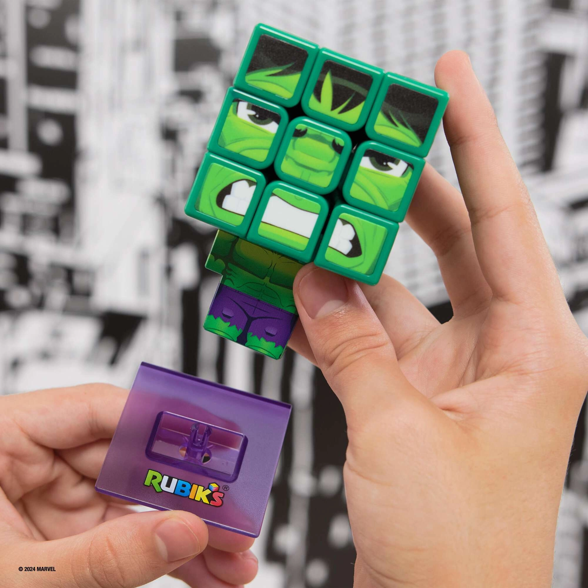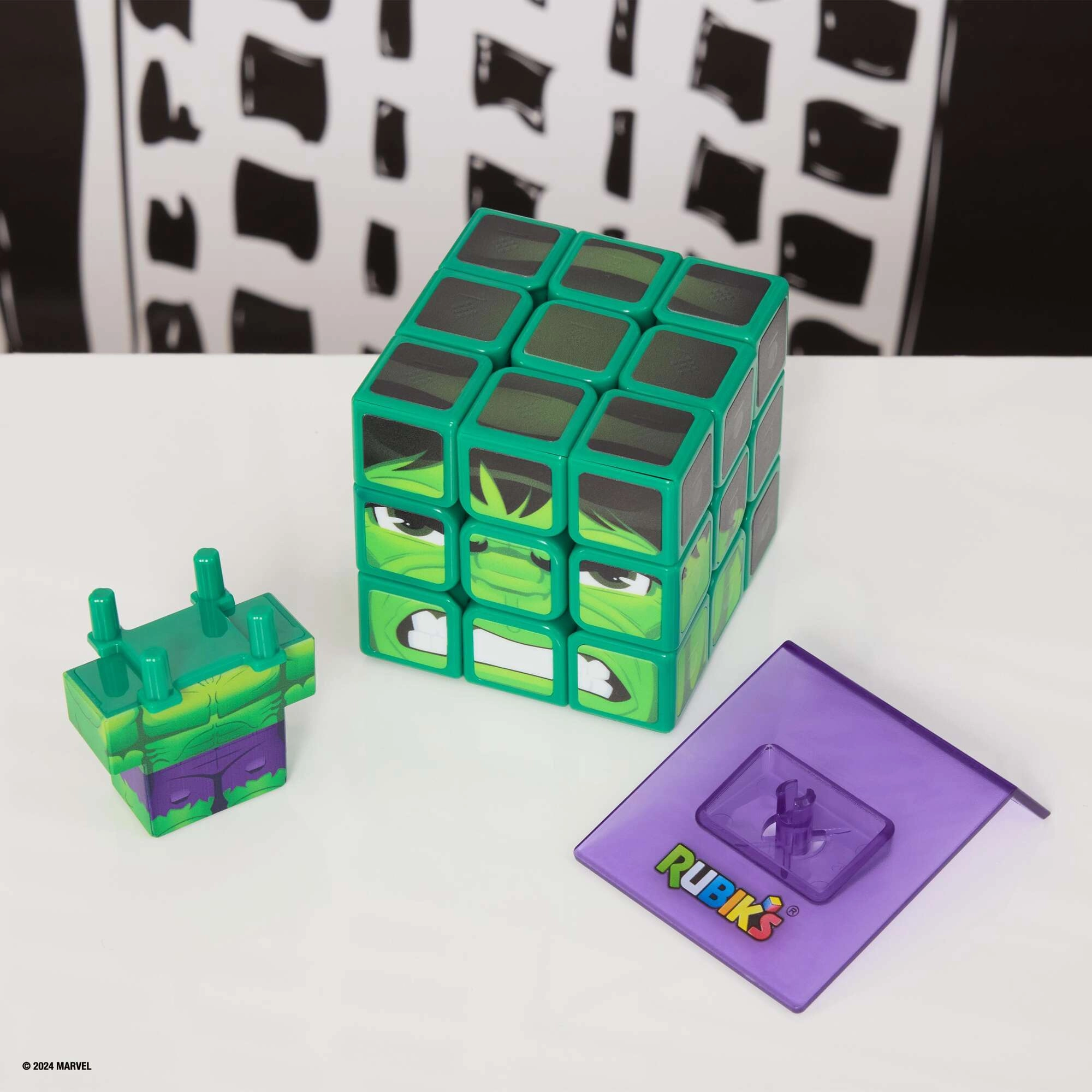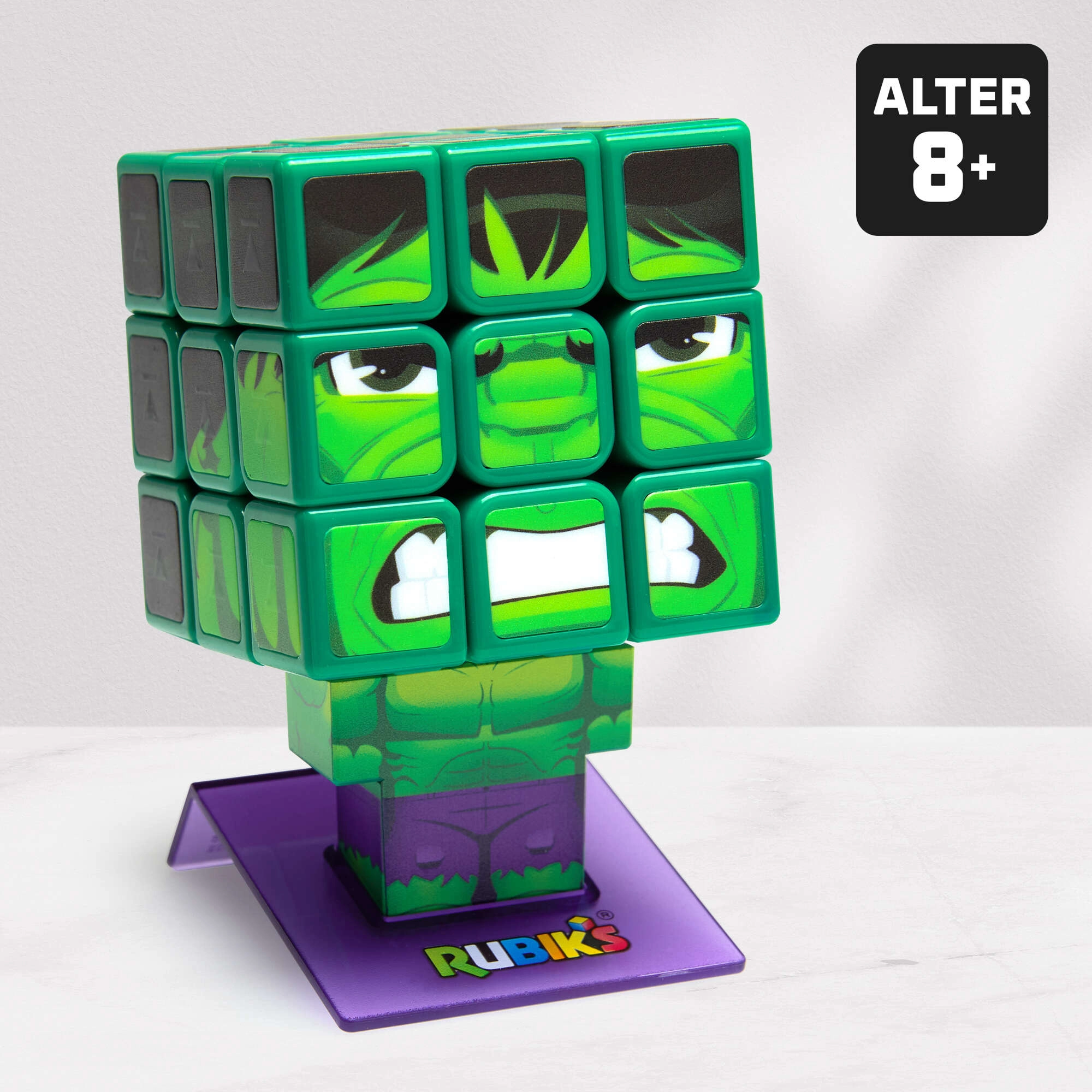 Otkrijte ikoničnu logičku igru u herojskom izdanju: Rubik 3x3 HULK Cubers spaja klasičnu slagalicu s atraktivnim MARVEL motivom. Okrećite, promiješajte i uskladite dijelove kako biste posložili upečatljivo HULKOVO lice – a zatim kocku postavite na ljubičasto postolje i dopunite trupom u stylish izložbenu figuricu.