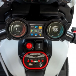 Motor je opremljen LED prednjim svjetlima za atraktivan izgled i bolju vidljivost, kao i multimedijskom pločom s glazbom, dječjim pjesmicama i edukativnim funkcijama. Zahvaljujući jednostavnom pokretanju jednim gumbom i gumbu za vožnju naprijed/natrag, lako će ga savladati i mlađa djeca.