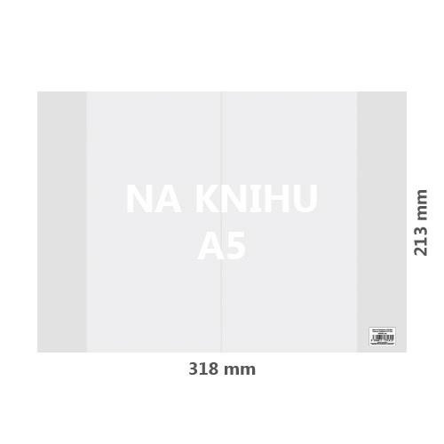 Prikladna za knjige i bilježnice formata A5. Dimenzije 318 × 213 mm pružaju rezervu za jednostavno navlačenje i čvrsto držanje bez klizanja. Prozirnost zadržava vidljivost korica i naljepnica.