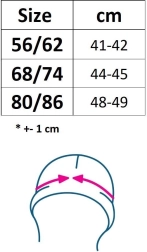 Kapa je oblikovana preko ušiju, a zahvaljujući vezicama lako je prilagodite tako da čvrsto stoji i pri kretanju, a pritom ne pritišće. Certifikat OEKO‑TEX STANDARD 100 jamči sigurnost materijala za djecu.