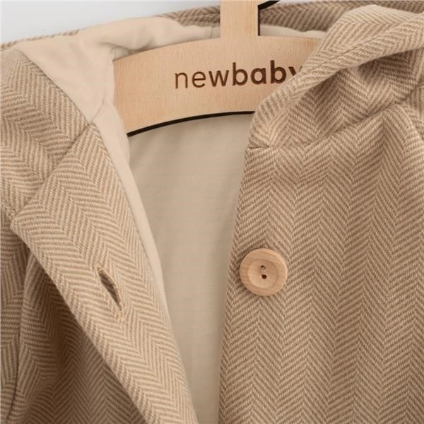 Stilizan i udoban jesenski kaputić NEW BABY UNI s kapuljačom za dječake i djevojčice. Nudi univerzalan kroj, topliju tkaninu prikladnu i za blagu zimu te kvalitetnu pamučnu podstavu za ugodno nošenje. Drveni gumbi daju elegantan izgled, a kapuljača pouzdano štiti od hladnog vjetra.