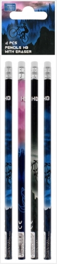 Paket sadrži 4 kom olovke duljine 19 cm, koje udobno leže u ruci i djeci i odraslima. Stilski dizajn s motivom bicikla daje priboru za pisanje originalan izgled.