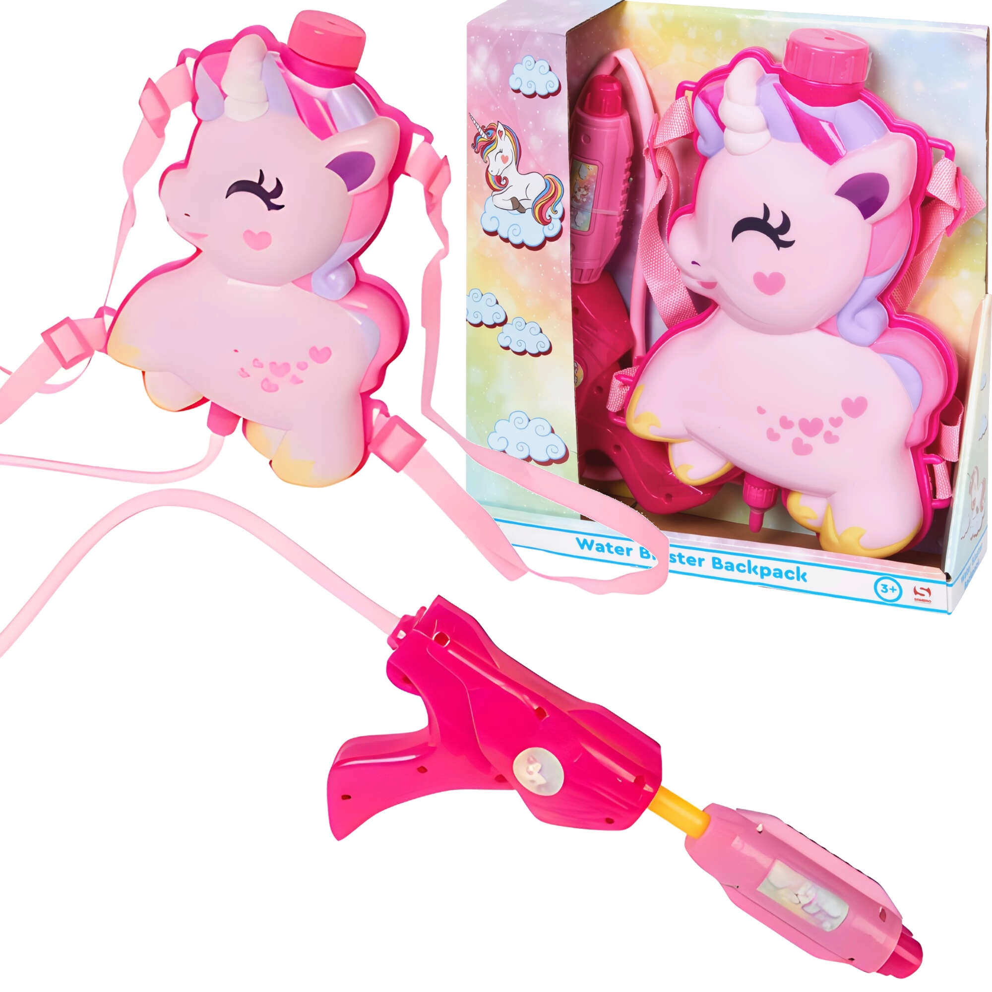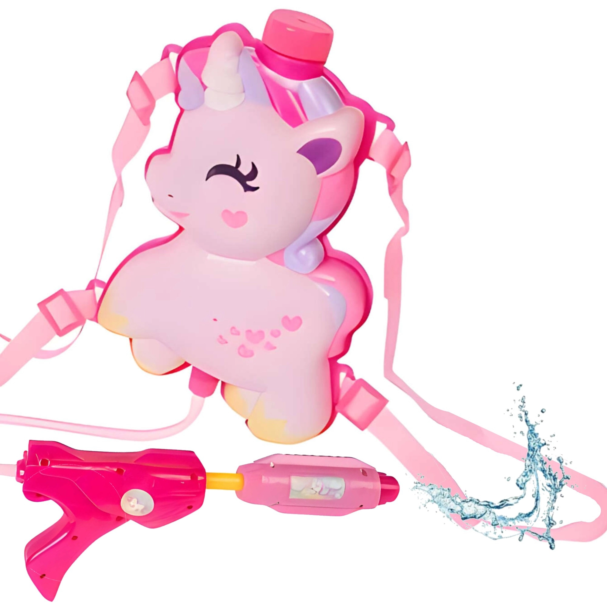 Preslatki ruksak–rezervoar u obliku jednoroga i lagana ručna štrcaljka spojena fleksibilnom cijevi idealni su za aktivnu igru u vrtu, na igralištu i uz vodu. Djeca će cijeniti jednostavno punjenje i udobno nošenje, a roditelji sigurnu i kreativnu zabavu na svježem zraku.