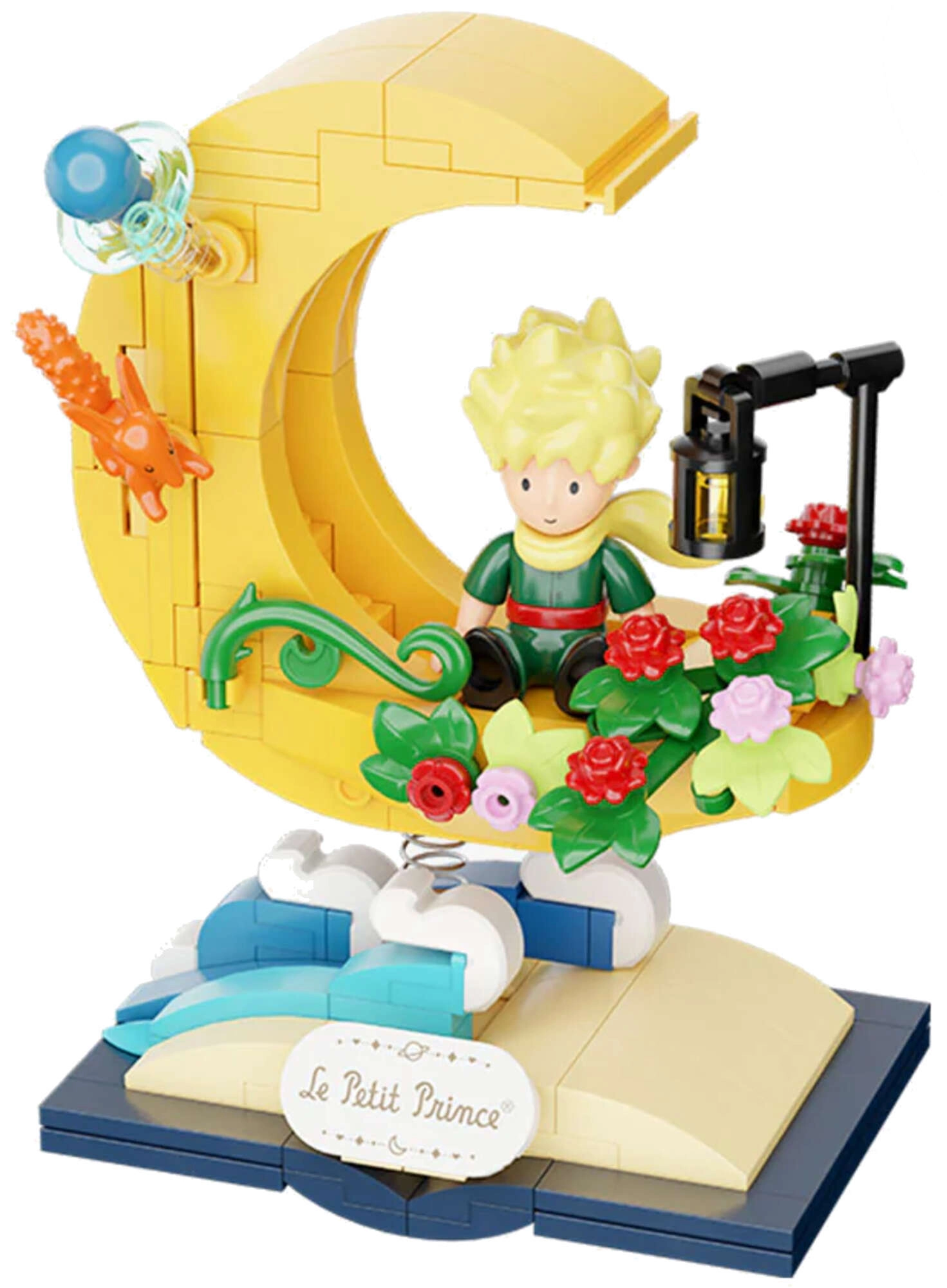 Uđite u poetični svijet Malog princa s očaravajućom scenom na postolju u obliku otvorene knjige „Le Petit Prince“. Mali princ sjedi na zlatnom polumjesecu, oko njega lebde zvijezde i oblaci, tu su i lampica, šareno cvijeće te lisica – sve s finim, trajnimm tiskom za dugotrajan lijep izgled bez naljepnica.