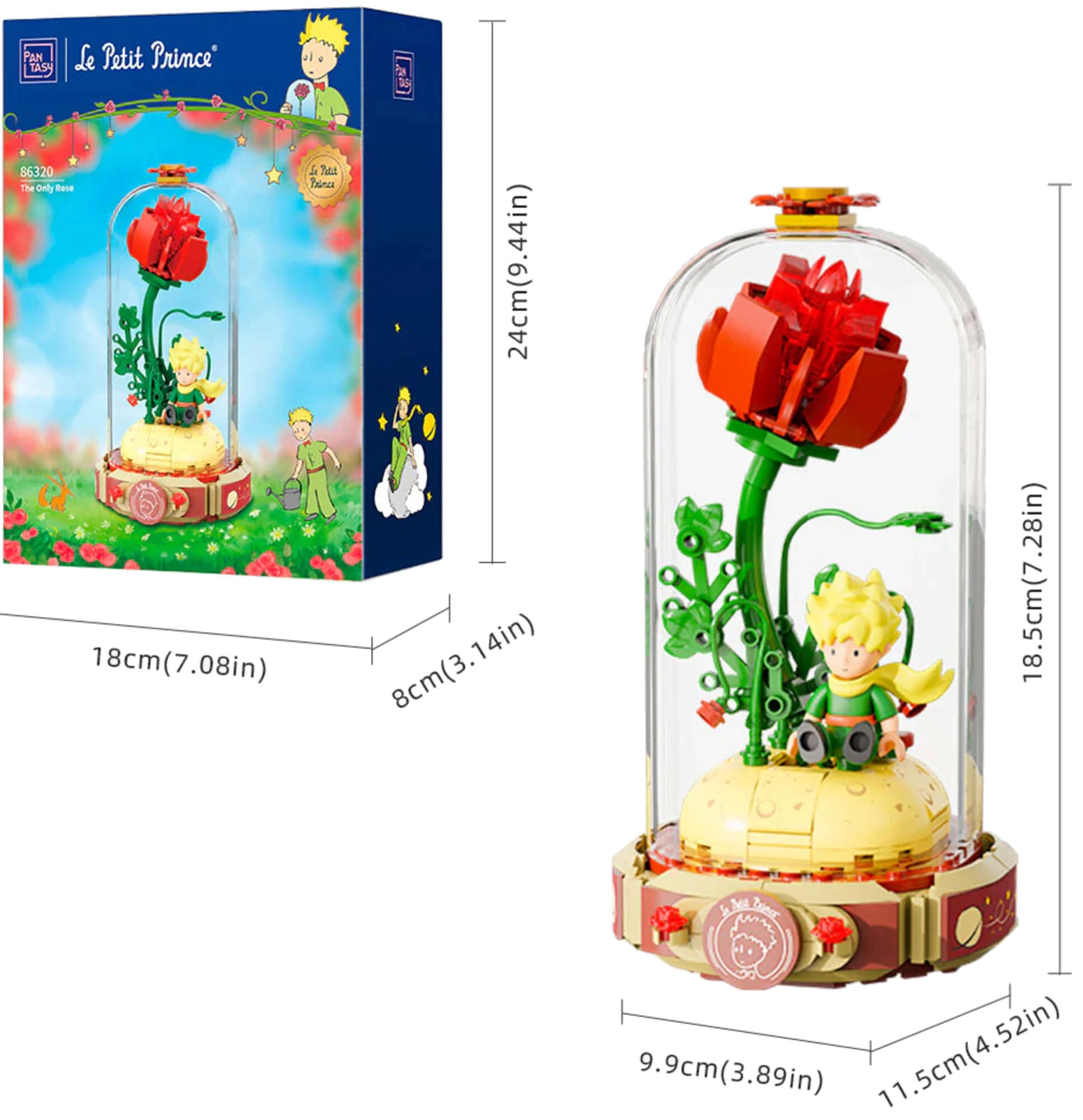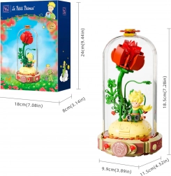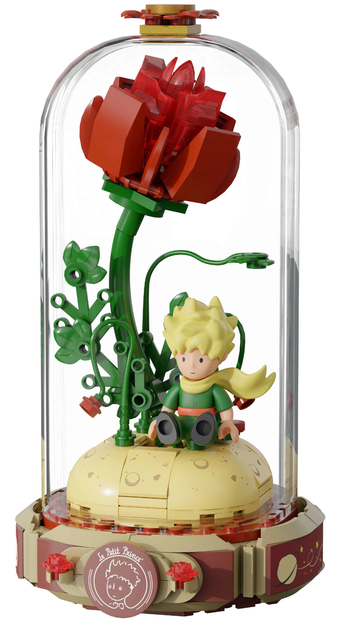 Složite simboličnu crvenu ružu na postolju u obliku otvorene knjige s natpisom „Le Petit Prince“. Pokraj nje stoje Mali princ i lisica u prepoznatljivoj pozi. Dotjerani detalji stabljika, listova i cvijeta daju modelu sklad i eleganciju – izvrstan komad za izlaganje i kreativnu zabavu.