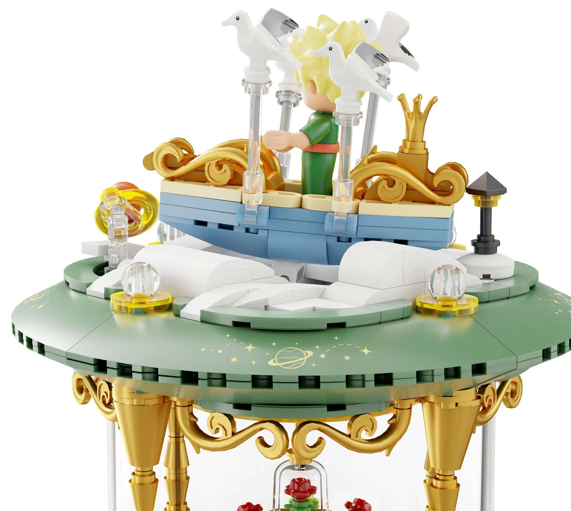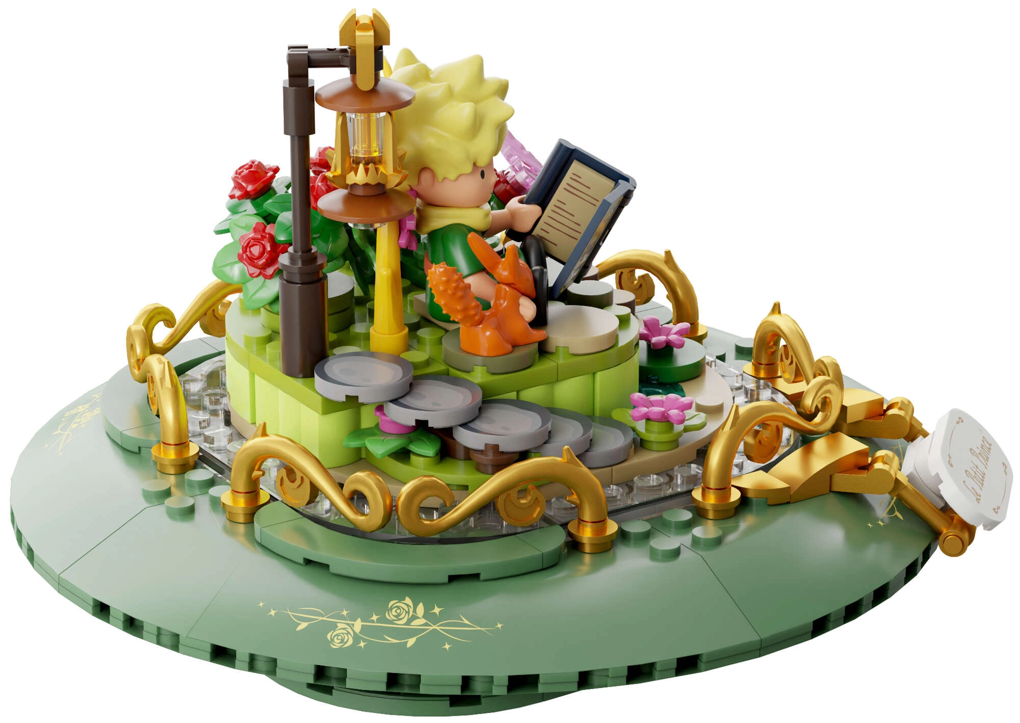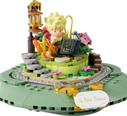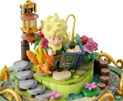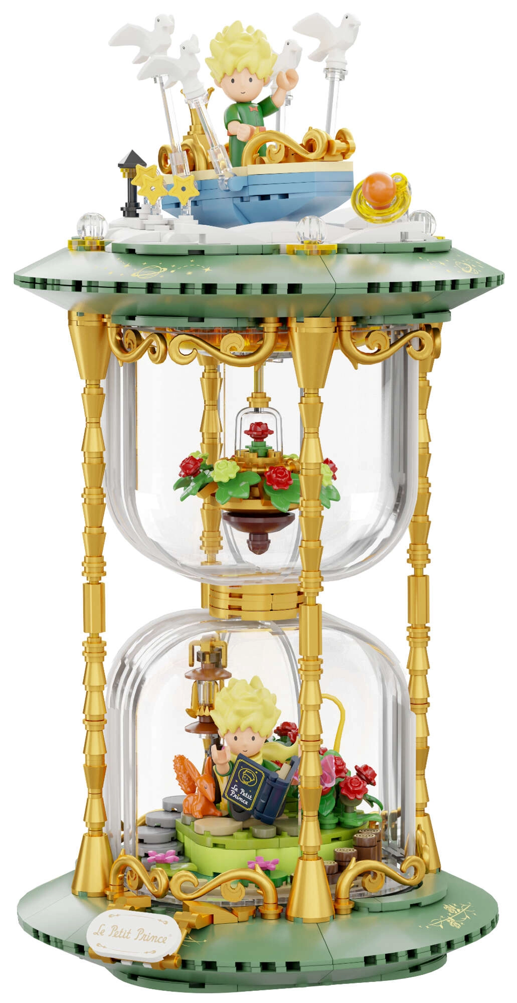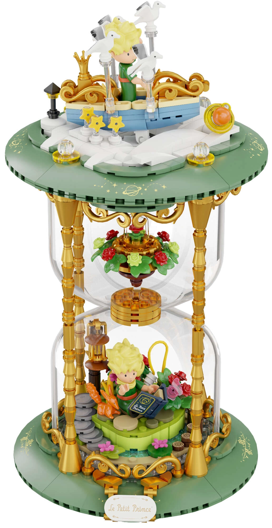 Ovaj izložbeni građevni set u obliku stilskog pješčanog sata spaja poetiku bezvremenog djela s modernim dizajnom. Zeleni postamenti, zlatni stupovi i prozirne komore s mini scenama stvaraju efektan dioramski prikaz – Mali princ, lisica, ruža pod staklenim pokrovom i zvjezdano nebo. Zahvaljujući preciznom slaganju kockica i tiskanim uzorcima model zadržava čist izgled dugi niz godina.