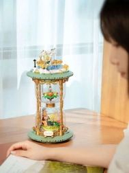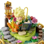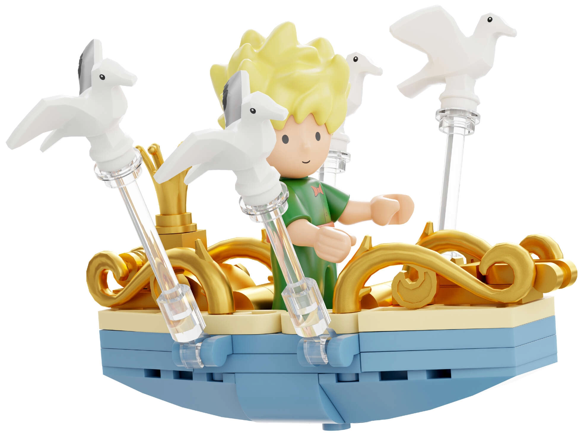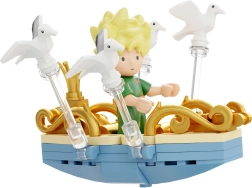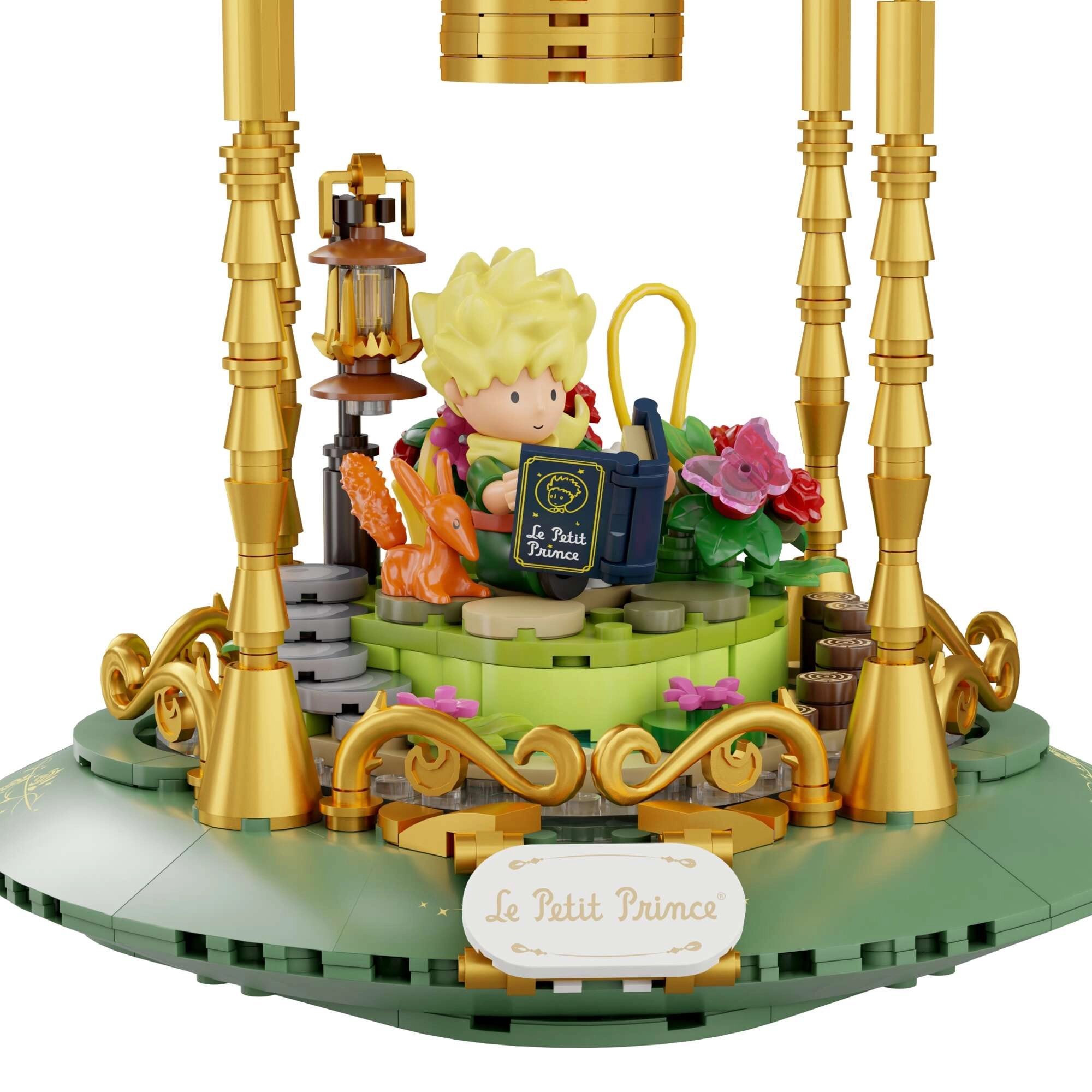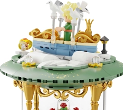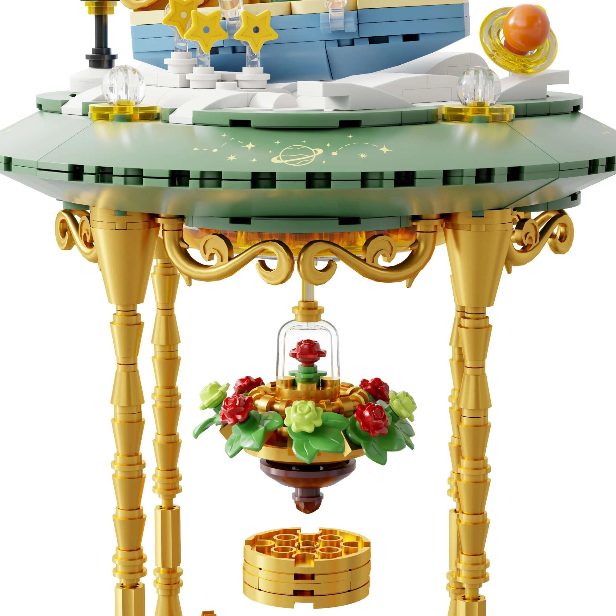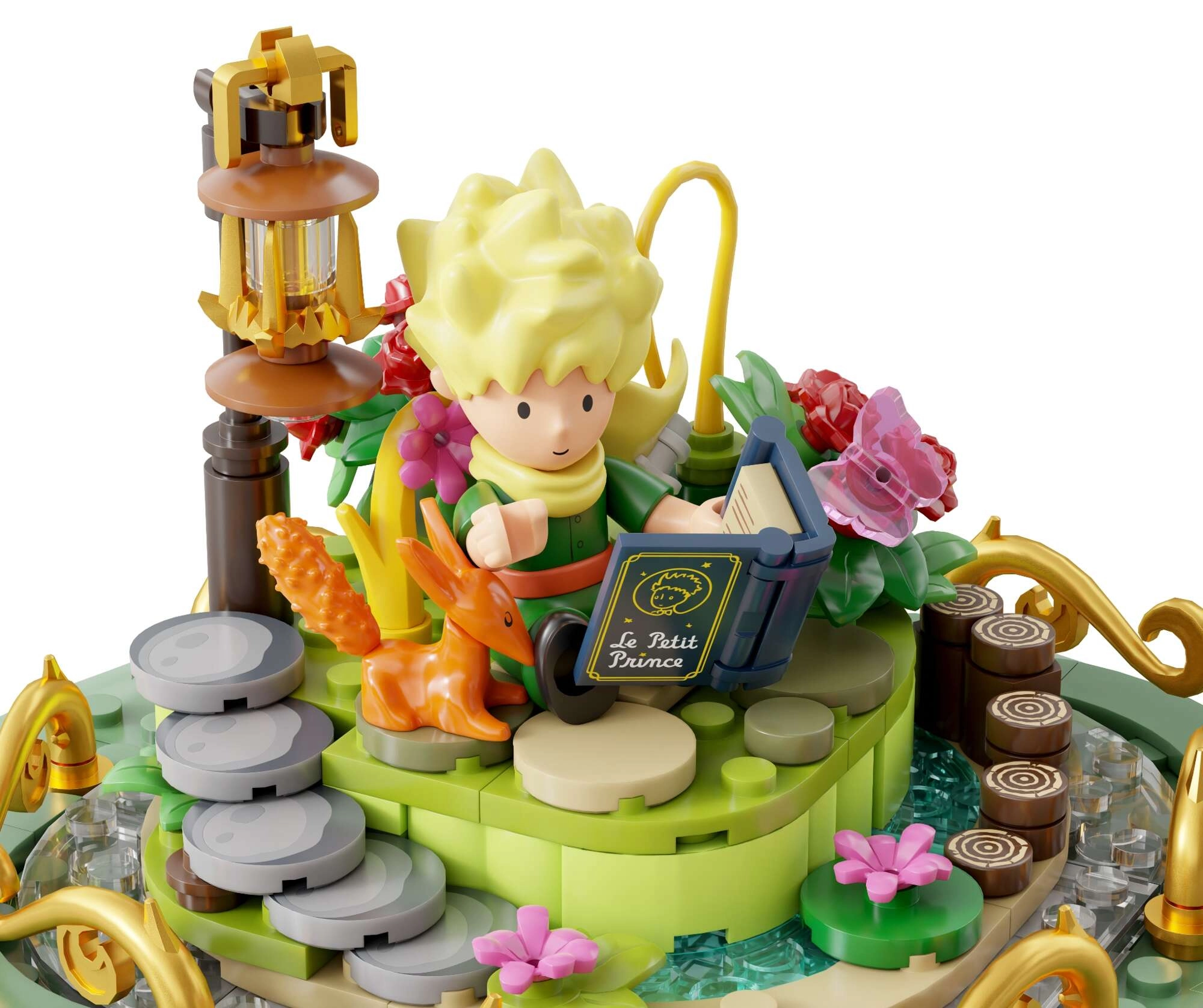 Ovaj izložbeni građevni set u obliku stilskog pješčanog sata spaja poetiku bezvremenog djela s modernim dizajnom. Zeleni postamenti, zlatni stupovi i prozirne komore s mini scenama stvaraju efektan dioramski prikaz – Mali princ, lisica, ruža pod staklenim pokrovom i zvjezdano nebo. Zahvaljujući preciznom slaganju kockica i tiskanim uzorcima model zadržava čist izgled dugi niz godina.