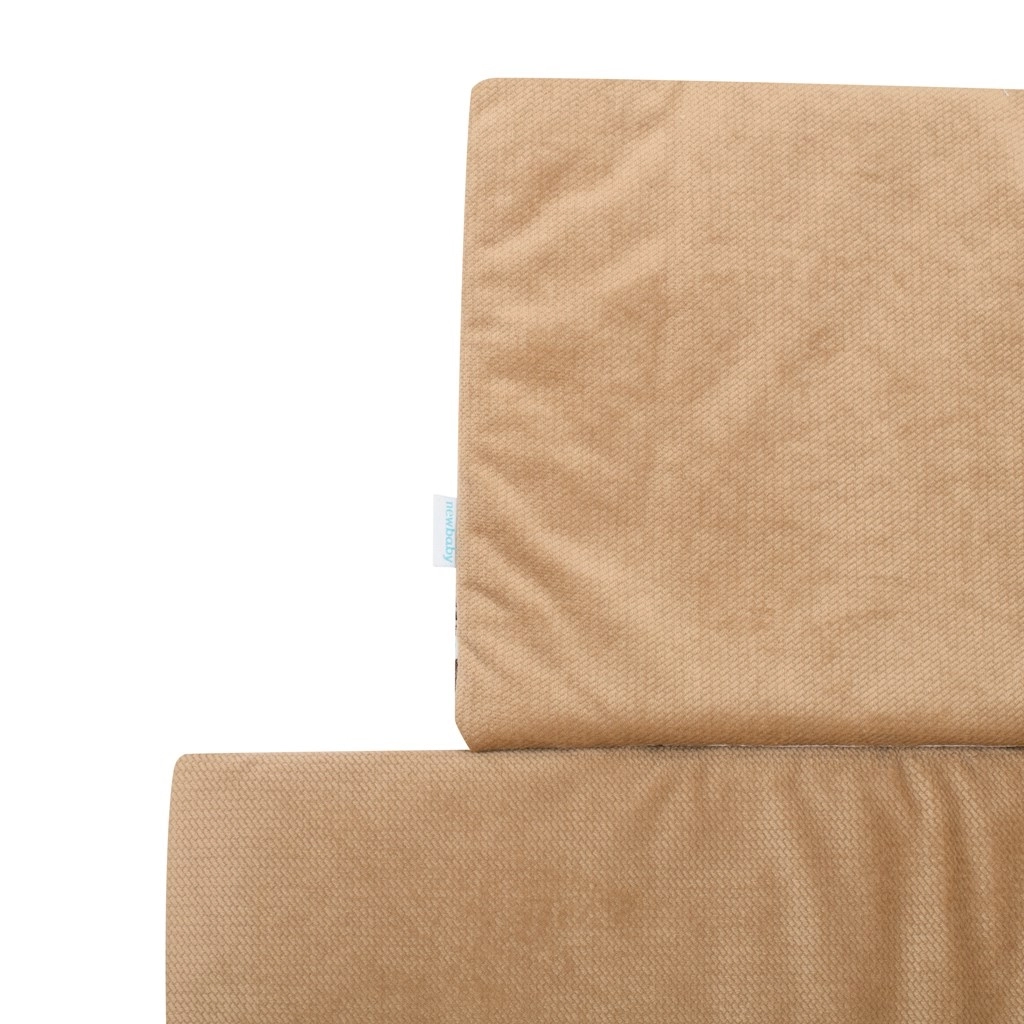 Mekani obostrani set za kolica NEW BABY Safari kombinira 100% pamuk s nježnim velvetom za maksimalnu udobnost bebe. Sadrži jastučić i pokrivač s antialergijskim punjenjem, siguran je, otporan na blijeđenje i zahvaljujući certifikatu OEKO-TEX Standard 100 nježan prema osjetljivoj dječjoj koži.