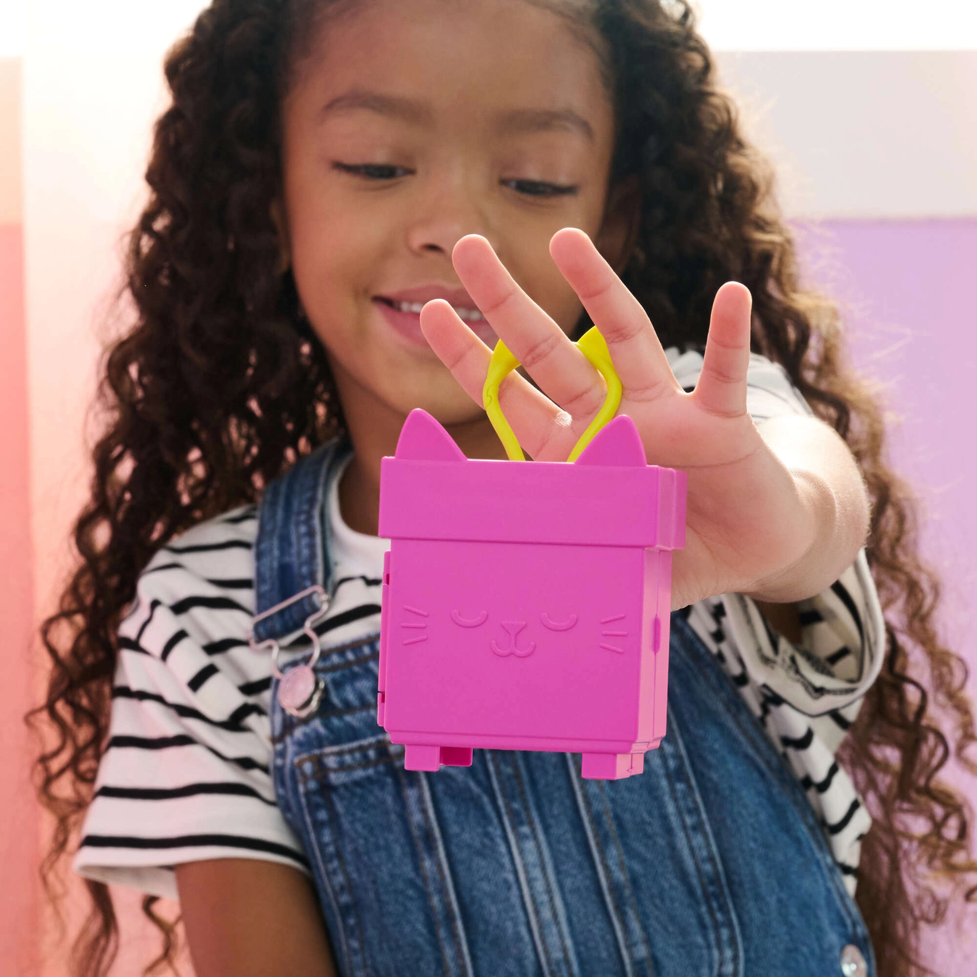 Otkrijte čarobni miniboks iz crtića Gabby’s Dollhouse s likom Kitty Fairy. Preslatka mačkasta kutijica s ručkom i kopčom skriva šarenu mini scenu, figuricu i dodatke za maštovitu igru u pokretu. Setovi se mogu međusobno povezivati i stvoriti vlastitu malu Gabby kućicu.