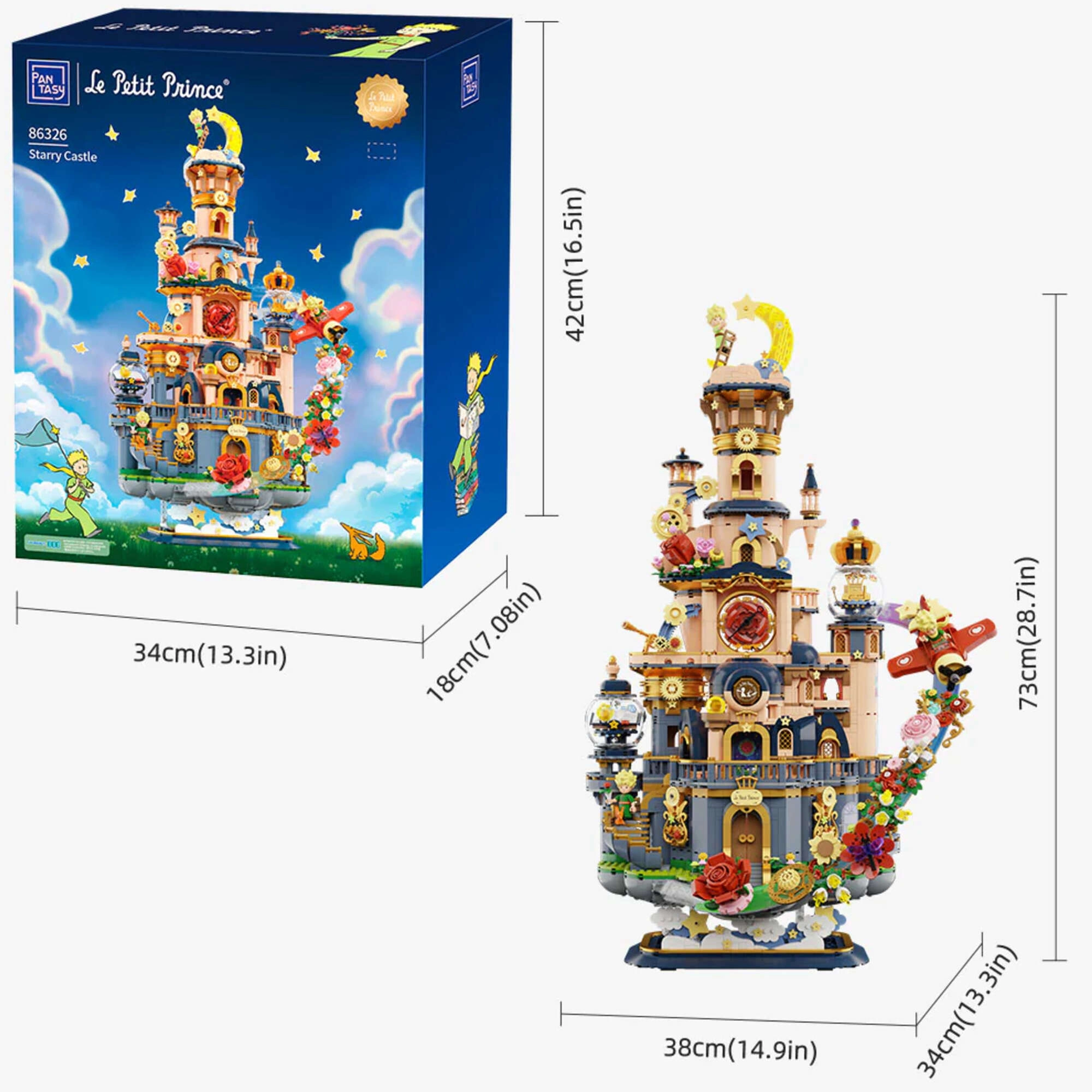 Uđite u poetski svijet Le Petit Princea s očaravajućim modelom dvorca koji kao da lebdi među zvijezdama. Razrađeni tornjevi, balkoni, cvjetni motivi i vidljivi zupčanici stvaraju dojmljivu scenografiju koja će se istaknuti na svakoj polici. Set je prikladan za kreativne graditelje i strastvene kolekcionare – od prve kockice do posljednjeg detalja.
