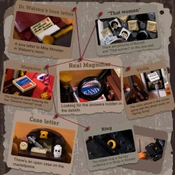 Set je izra11en od kvalitetne ABS plastike, nudi promi61ljenu gradnju i nakon dovr61etka postaje impresivna dekoracija za dom ili ured. Odli0Dan je za iskusne graditelje i po0Detnike te predstavlja idealan poklon za ljubitelje SHERLOCKA HOLMESA i kolekcionare.