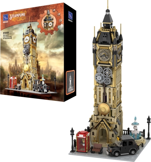Ovaj službeno odobreni model iz Steampunk edicije prenosi graditelje u svijet industrijskog vintidža. Topli brončani, smeđi i tamno metalni tonovi stvaraju autentičnu atmosferu doba pare, dok će središnji toranj sa satom smješten u slikovitom parku postati dominanta svake kolekcije. Set naglašava mehaničku preciznost i vizualni detalj, pa je idealan za izlaganje i kreativnu igru.
