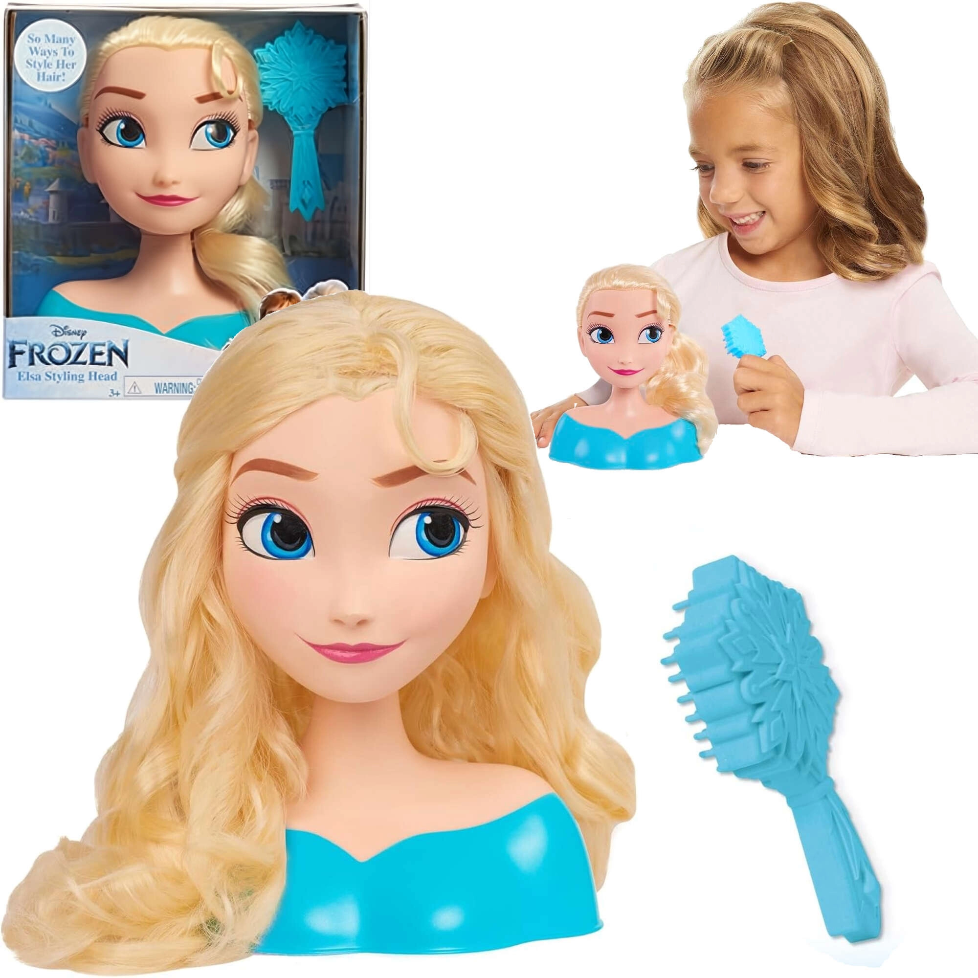 Otkrijte čarobnu glavu za češljanje i stiliziranje s likom DISNEY FROZEN Elsa. Duga, sjajna plava kosa, velike plave oči i stabilno poprsje potiču na kreativnu igru. U kompletu je četka u obliku snježne pahulje za lako češljanje i izradu frizura. Idealna igračka za djecu od 3 godine koja razvija finu motoriku, maštu i osjećaj za estetiku.