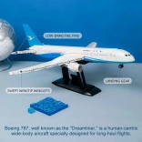 Ovaj realističan set donosi ikonu modernog zrakoplovstva – BOEING 787 Dreamliner – u dojmljivom eksponatu dugačkom 55 cm. Precizno izrađeni elementi, uključujući turbomlazne motore, aerodinamične površine i detaljnu kabinu, pojačavaju autentičan izgled. Otisnuti detalji izravno na dijelovima osiguravaju dugotrajno čist i elegantan izgled bez ljuštenja naljepnica.