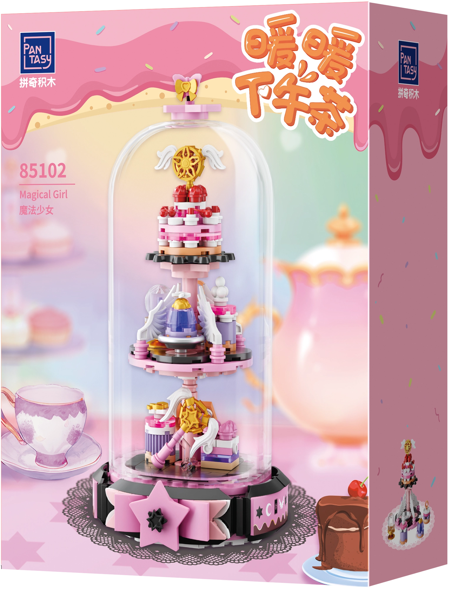 Pantasy Magical Girl je šarmantan konstrukcijski set s 266 dijelova koji spaja čarobnu estetiku s preciznom izradom. Pod prozirnom kupolom sastavit ćete trokatno postolje puno slatkih ukrasa, zvjezdica i nježnih detalja. Zahvaljujući tiskanim otiscima bez naljepnica, model dugoročno izgleda odlično te je idealan kao dekoracija i poklon za djecu od 6 godina i odrasle ljubitelje slaganja.