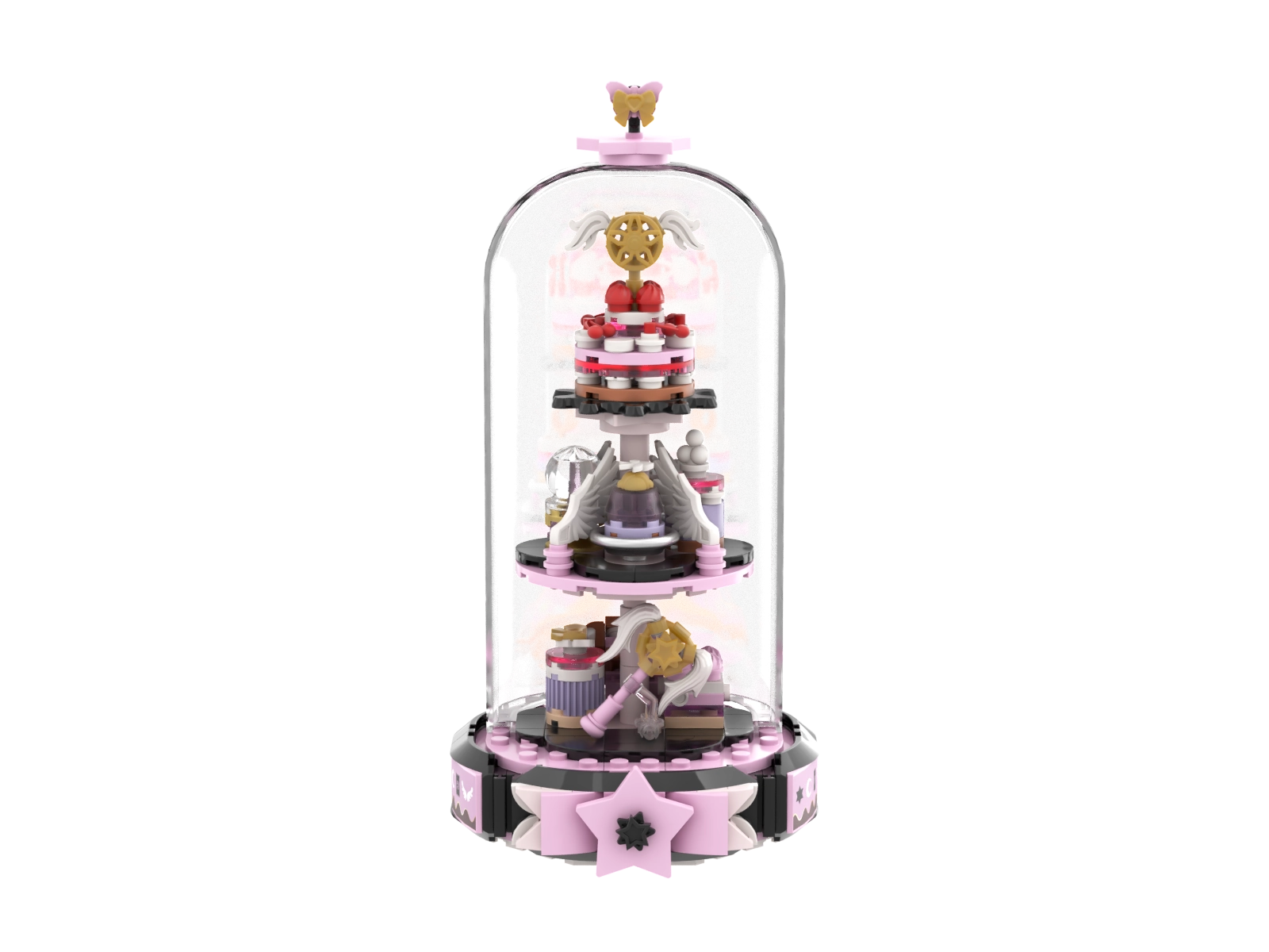 Otkrijte čar kreativnog slaganja s elegantnim modelom koji osvaja nježnom ružičasto‑zlatnom paletom i pomno osmišljenim elementima. Trokatna polica pod prozirnom kupolom djeluje poput izložbenog eksponata, a nakon slaganja postaje originalan ukras dječje sobe ili radnog stola.