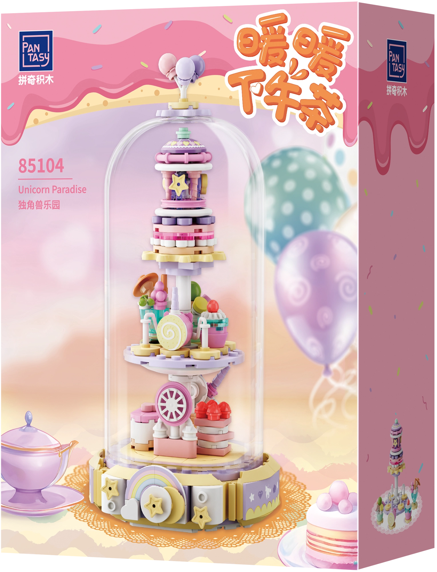 Uronite u bajkovitu atmosferu s troslojnom “slastičarnicom” punom jednoroga, zvjezdica i srdašaca. Prozirna kupola daje modelu elegantan izložbeni karakter i štiti sitne detalje. Nježne nijanse ružičaste, plave i ljubičaste stvaraju očaravajuću dekoraciju za dječju sobu ili policu kolekcionara.