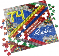 Uživajte u opuštanju i izazovu s službenim puzzle setom povodom 50. obljetnice Rubikove kocke. Nakon slaganja nastaje šarena mozaika sa stijenkom složenih kocaka, istaknutim brojem „74” i sloganom „Eat, Sleep, Game, Repeat!”. Zahvaljujući kontrastnim bojama i upečatljivoj grafici gotova slika odlično izgleda u okviru na zidu.