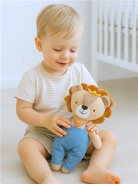 Ovaj plišani lav s preslatkom krunom i plavim hlačicama potiče finu motoriku i maštu. Savršen je za umirivanje pri uspavljivanju i kao vjerni prijatelj za dnevno otkrivanje. Kvalitetna izrada i vezeni detalji jamče sigurno korištenje bez sitnih odvojivih dijelova.