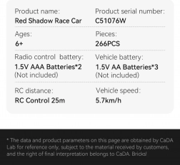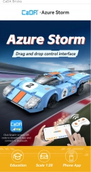 Konstruktorski set CaDA AZURE STORM spaja kreativnu gradnju s brzom RC vožnjom. Nakon sastavljanja dobit ćete detaljan trkaći automobil s aerodinamičnim oblikom, prozirnim kokpitom i sportskim naljepnicama, spreman za akcijske utrke u kući i na otvorenom. Upravljanje je intuitivno i stabilno zahvaljujući tehnologijama 2,4 GHz i Bluetooth.