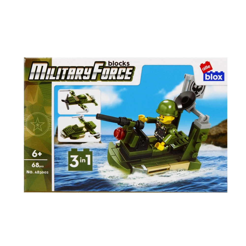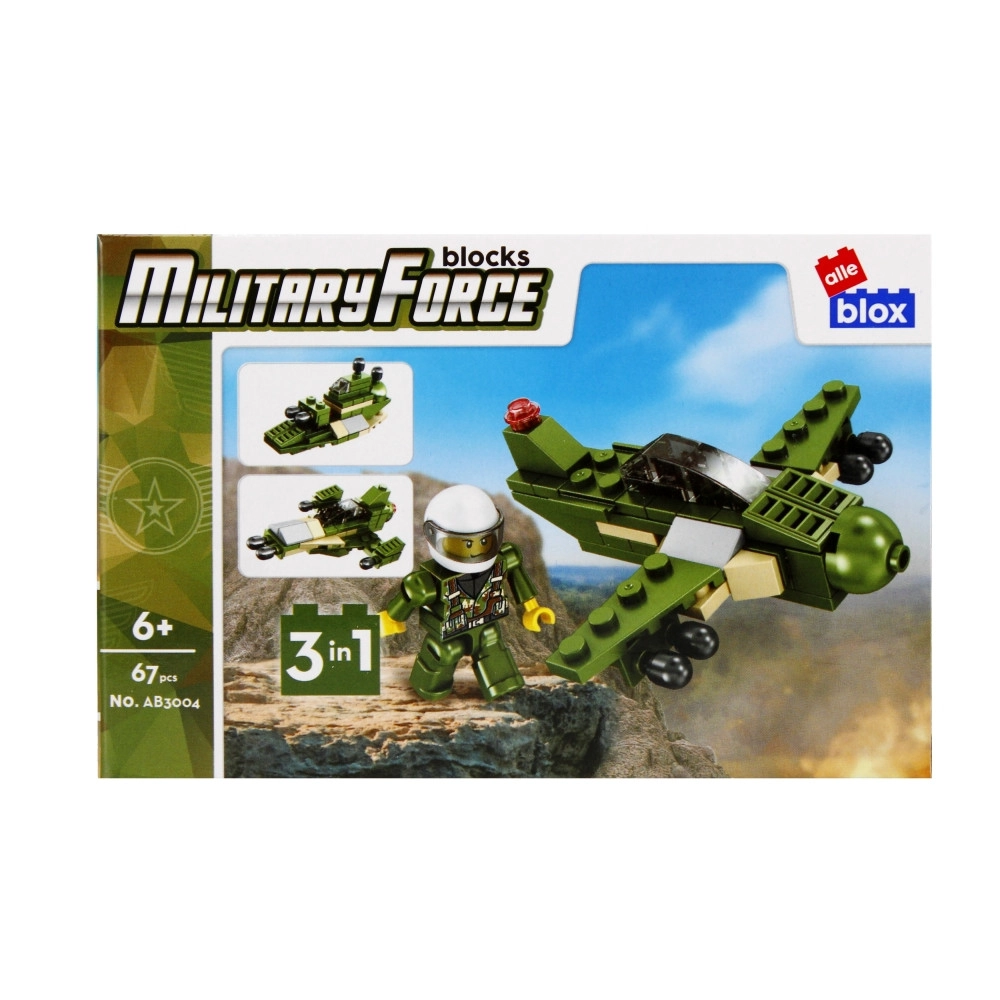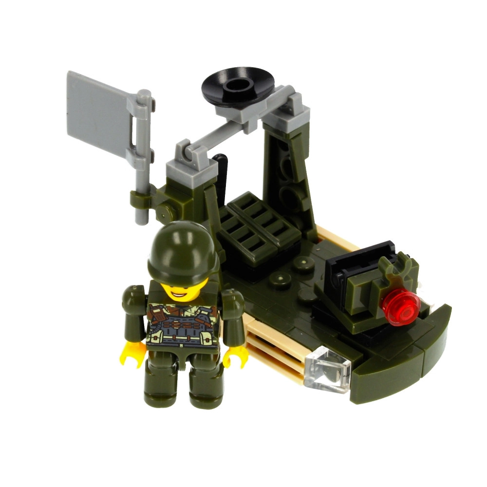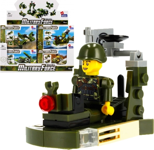 Otkrijte zabavne vojne građevne setove s minifiguricom za djecu od 6 godina. Svaki set nudi 63–64 dijelova, upute za sastavljanje i mogućnost odabira među četiri varijante (džip, čamac/raft, zrakoplovna tehnika itd.). Kompaktne dimenzije 9 × 6 × 10 cm jamče brzo slaganje, a ipak dovoljno prostora za kreativnu igru i izlaganje.