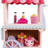 Šarena kolica s prugastim krovićem, prostorom za pohranu i ručkom. Mogu se priključiti na Candi i krenuti u prodaju slastica.