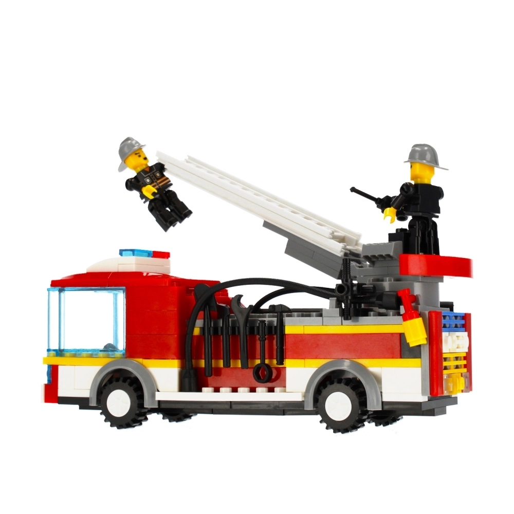 Ovaj detaljan konstrukcijski set vatrogasnog vozila nudi realistične značajke za napete spasilačke misije. Djeca će sastaviti crveno-bijelo vozilo s prozirnim vjetrobranom, bočnim alatima i dugim ljestvama koje se mogu izvlačiti i namještati za različite scenarije spašavanja.