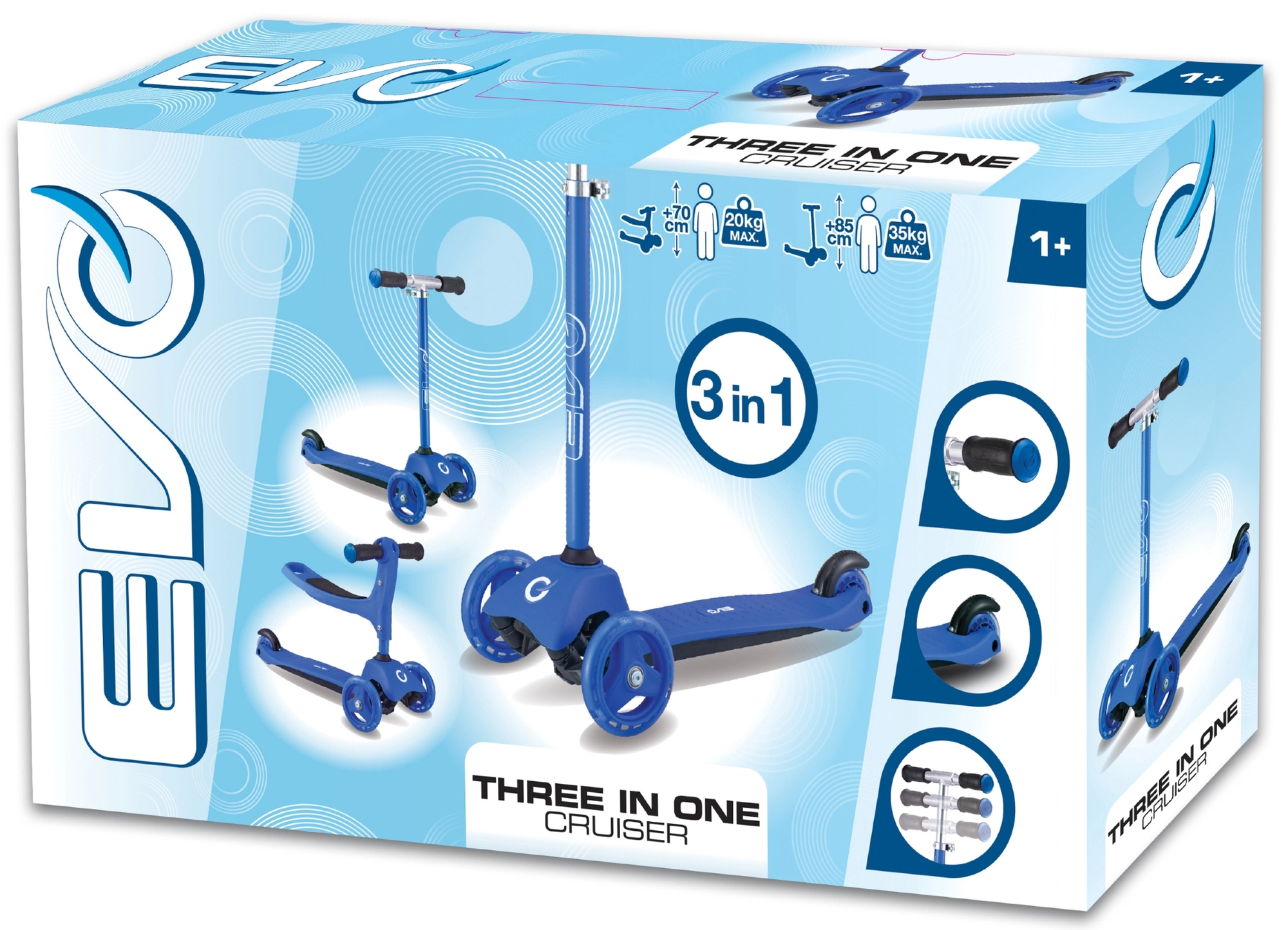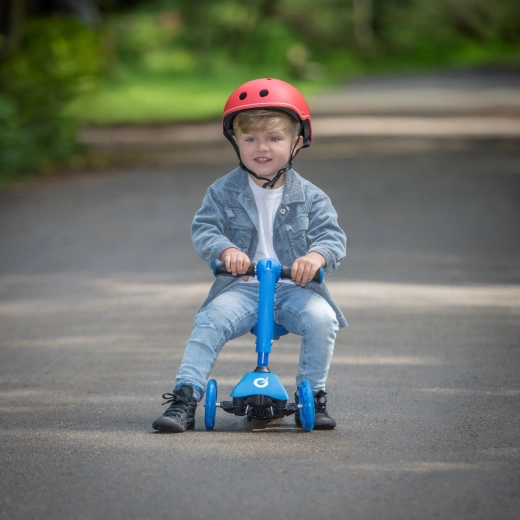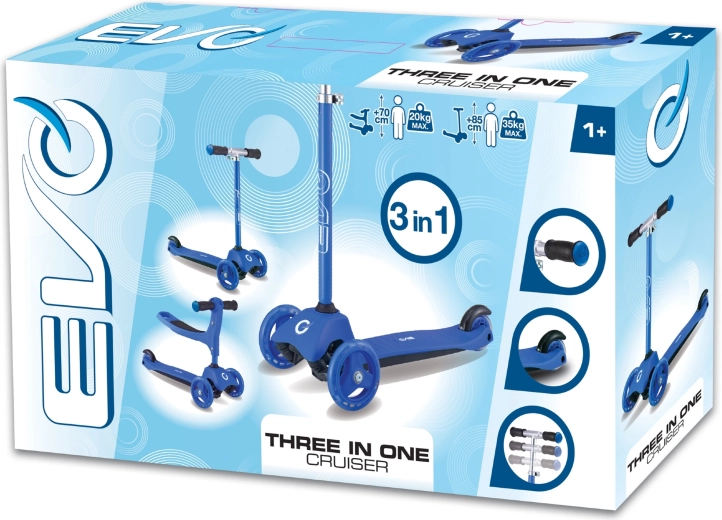 Romobil EVO 2-u-1 raste s djetetom: započnite u režimu guralice sa sjedalom za siguran start, a kasnije prijeđite na klasični trokolutni romobil. Dva velika prednja kotača osiguravaju izvrsnu stabilnost, lean-to-steer način upravljanja potiče prirodno učenje ravnoteže, a protuklizna platforma daje sigurnost na svakom metru.