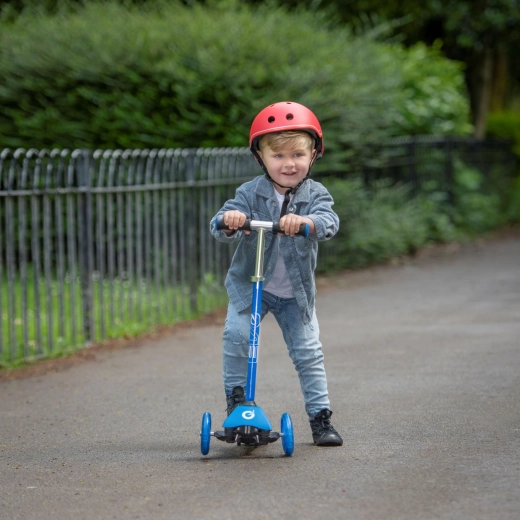 Dva velika prednja kotača drže smjer i ravnotežu, niska platforma s protukliznom površinom daje sigurnost malim vozačima.