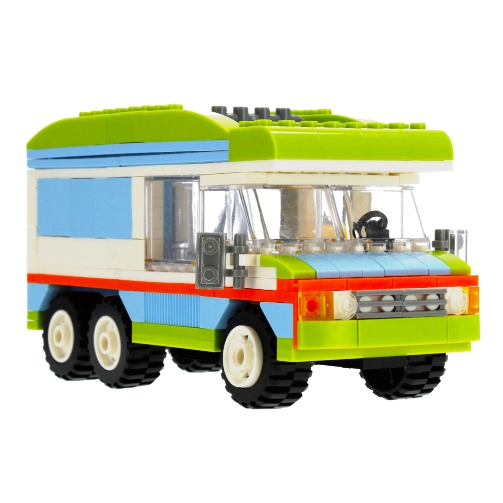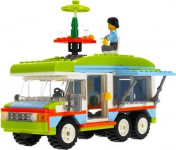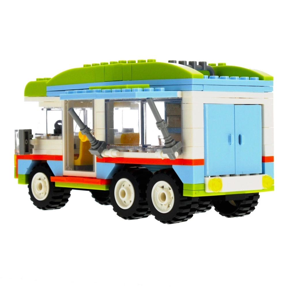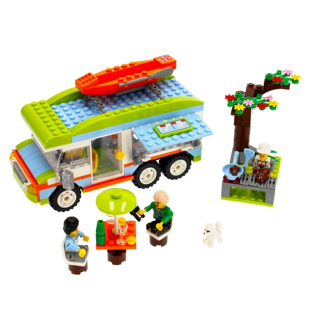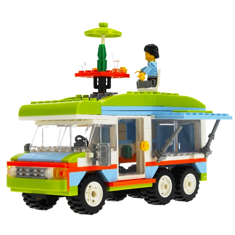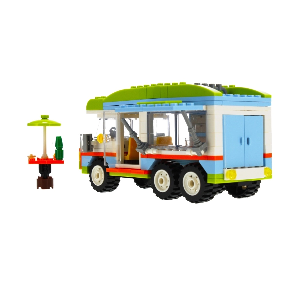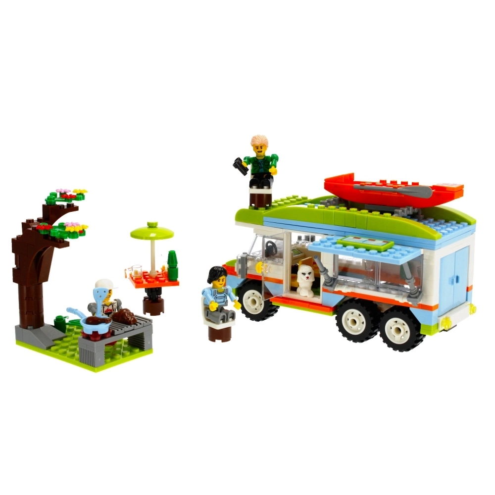 Složite vlastitu kampersku pustolovinu! Uz ovaj set izradit ćete detaljan karavan s otvarajućim dijelovima, krovnim držačem za čamac ili kajak, vanjskim mjestom za sjedenje, roštiljem i scenama za slobodne aktivnosti. Zahvaljujući 343 dijela djeca razvijaju kreativnost te vježbaju strpljenje i prostornu predodžbu.