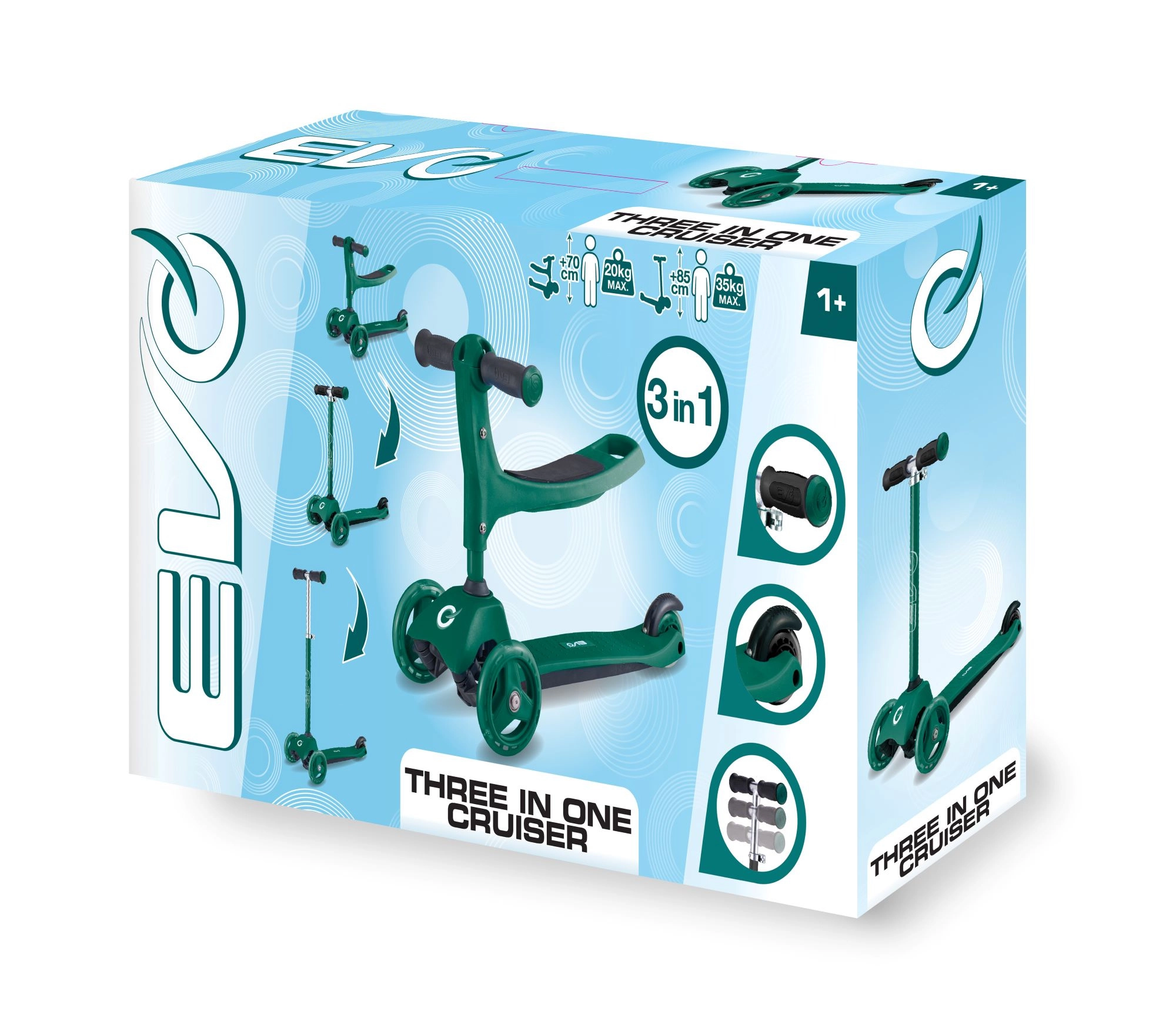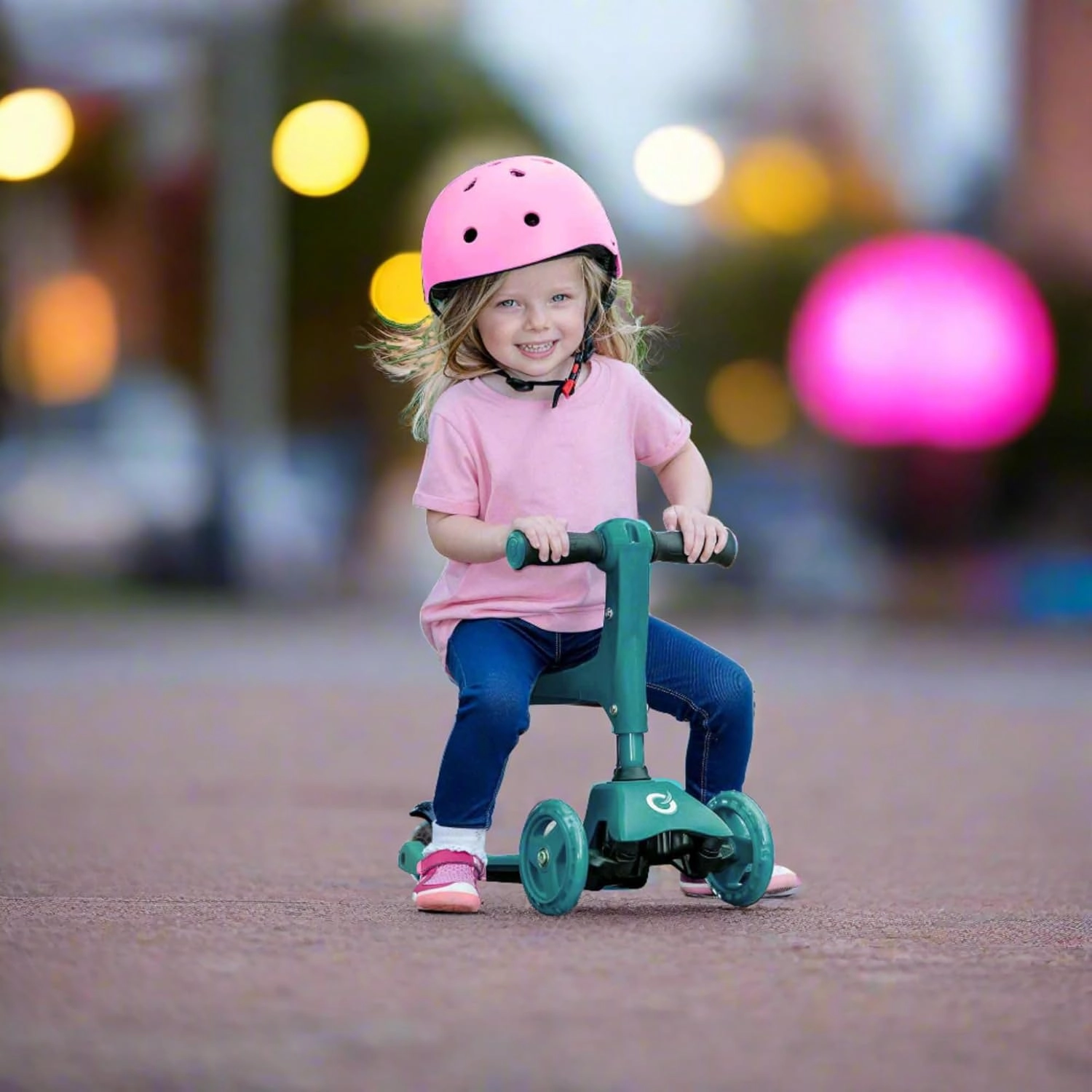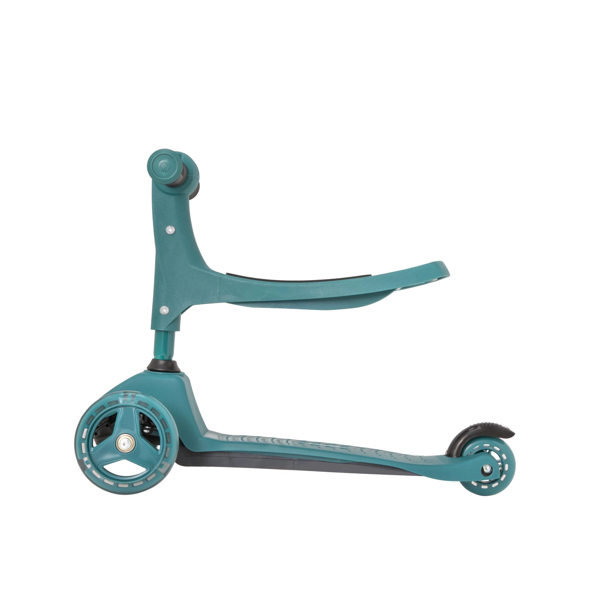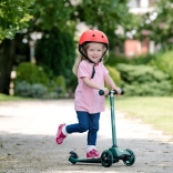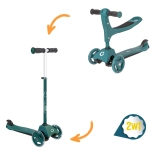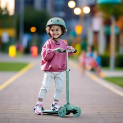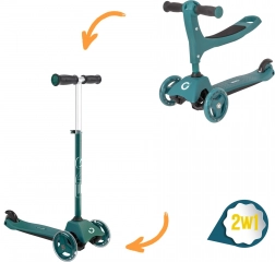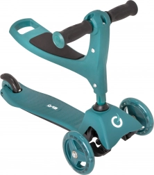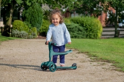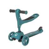 Ovaj pametni troskotačni romobil 2u1 u trenu se pretvara iz guralice sa sjedalom u klasični romobil. Zahvaljujući podesivim upravljačima (otprilike 40 cm u načinu guralice i 62–72 cm u načinu romobila) raste s djetetom i pruža sigurnost pri prvim vožnjama i kasnije pri živahnijem odgurivanju.