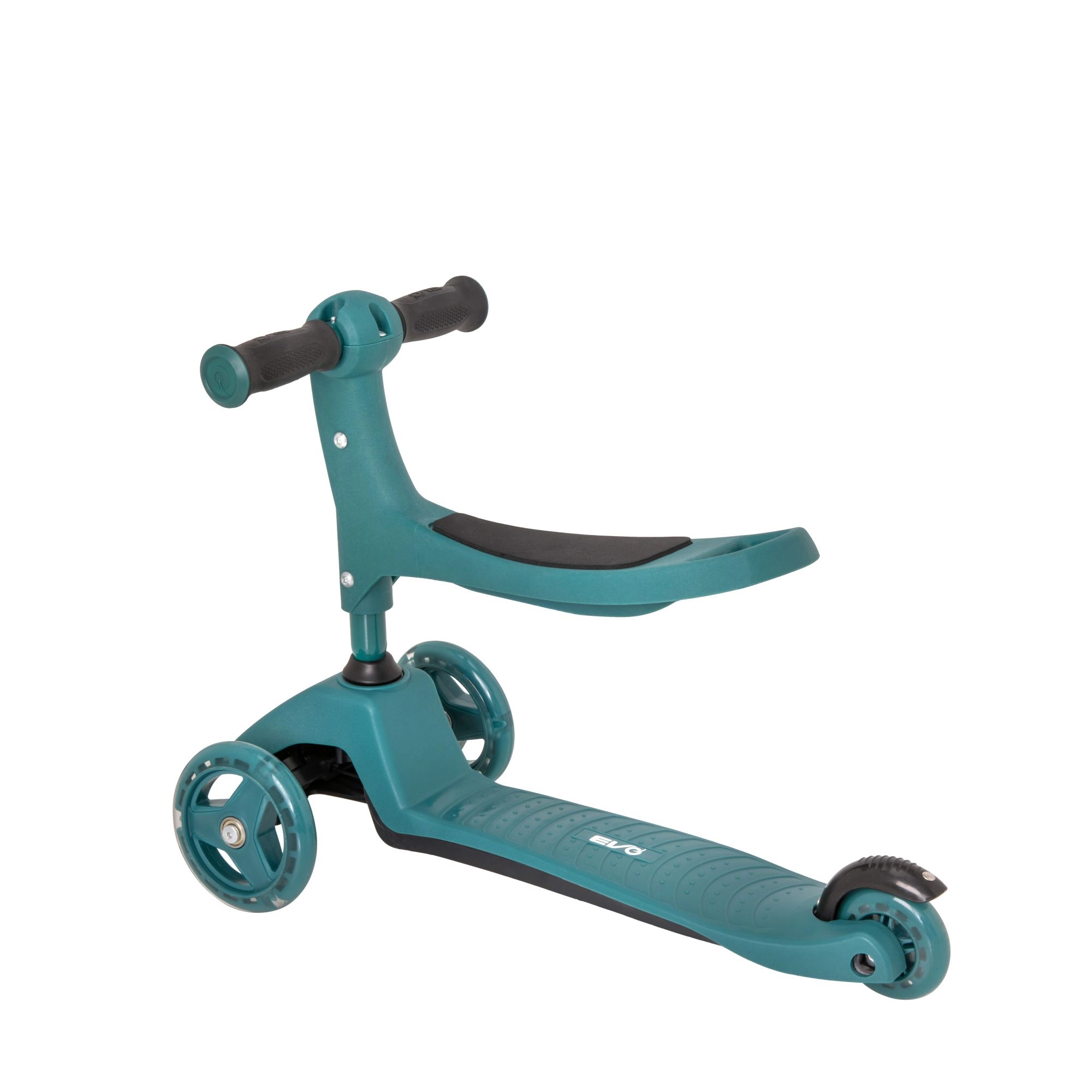 Priuštite djeci stabilnu i zabavnu vožnju s romobilom 2u1 marke EVO – spaja guralicu i romobil u jednom. Zahvaljujući trima kotačima, širokoj podlozi i podesivoj visini upravljača potiče ravnotežu i koordinaciju već od 1. godine. Dvostruka prednja kotača, tihi ABEC-5 ležajevi i nožna kočnica na stražnjem blatobranu osiguravaju sigurnu i glatku vožnju.
