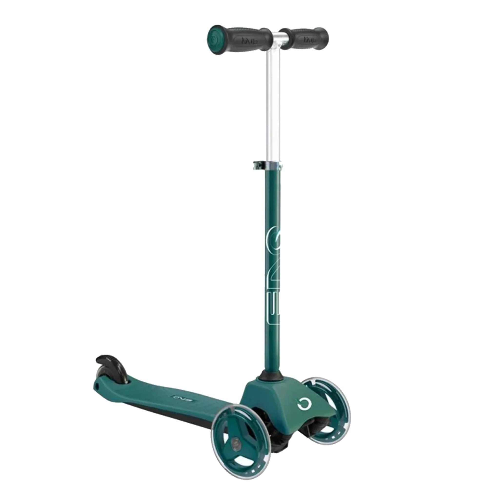 Stabilnost i sigurnost osiguravaju dva velika prednja kotača i manji stražnji kotač s nožnom kočnicom. Tih i ujednačen rad podupiru ležajevi ABEC-5, a gumeni TPE gripovi jamče čvrst hvat bez klizanja. Mala masa od 2,75 kg olakšava prenošenje i svakodnevnu upotrebu.