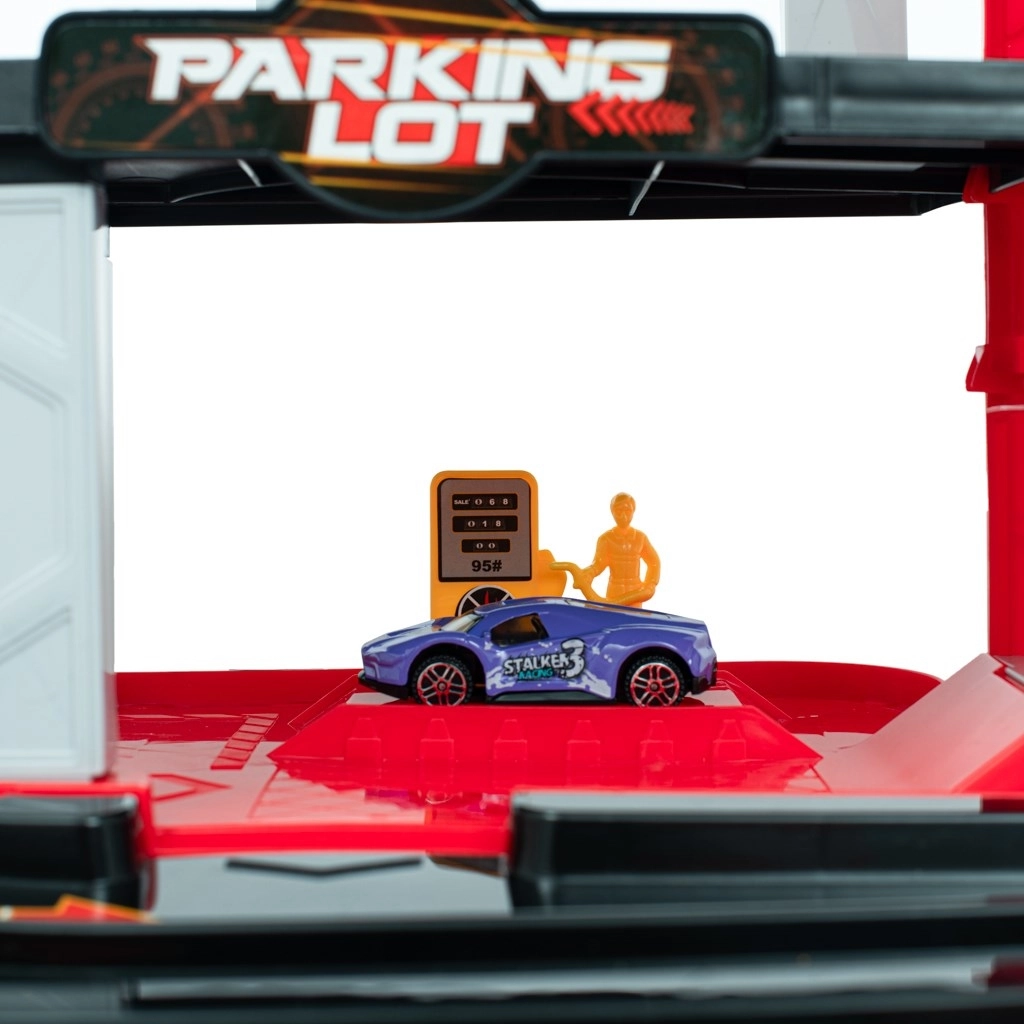 - Parkiralište s dizalom i rampama, benzinska postaja, heliodrom, 4 metalna autića, helikopter