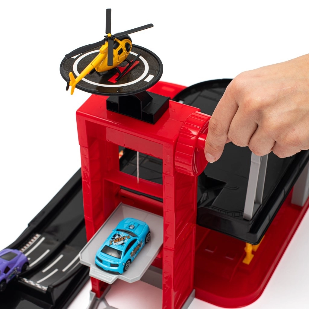 Dio seta je helikopter sa sletnom površinom, benzinska postaja i 4 metalna autića za raznolike scenarije igre i spasilačke misije.