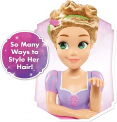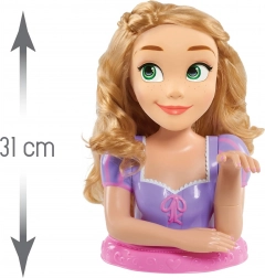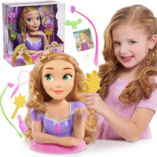 Ova luksuzna styling glava Rapunzel donosi djeci sve što trebaju za stvaranje čarobnih frizura. Zahvaljujući dugoj plavoj kosi lako je češljati, valoviti, plesti i kombinirati razne ukrase. Stabilno postolje drži glavu čvrsto na stolu, pa se djeca mogu posvetiti kreativnoj igri.