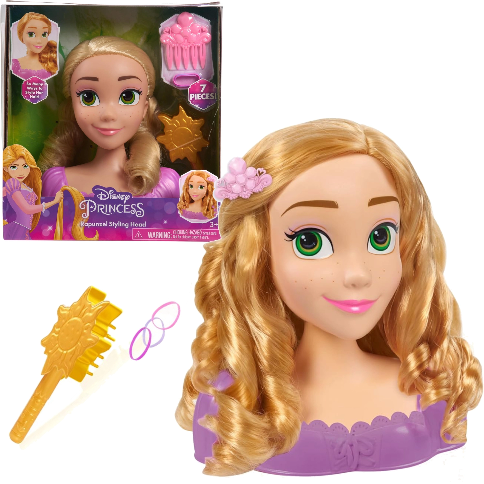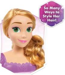 Stilizacijska glava RAPUNZEL s ikoničnim, dugim plavim vlasima donosi djeci beskrajnu zabavu pri češljanju, pletenju i ukrašavanju. Stabilno postolje i kvalitetna izrada osiguravaju udobnu i sigurnu igru, dok tematski dodaci inspirirani bajkom oživljavaju svaku dječju maštu.