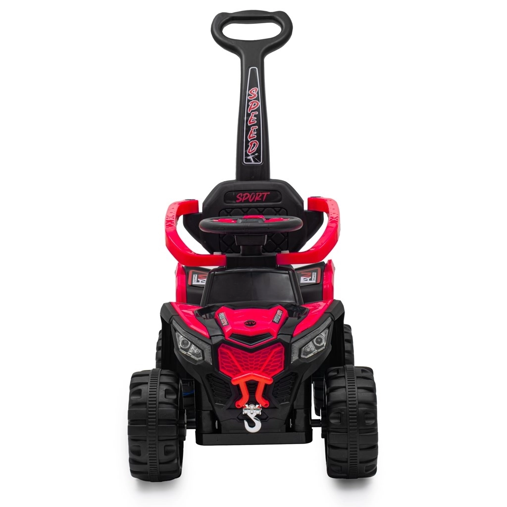 Terenski izgled inspiriran off-road vozilima, velika kola i ergonomski oblikovano sjedalo od eko kože osiguravaju udobnost i stil. Guralo je idealno za unutarnju i vanjsku uporabu, potiče ravnotežu, koordinaciju i zdravo kretanje.