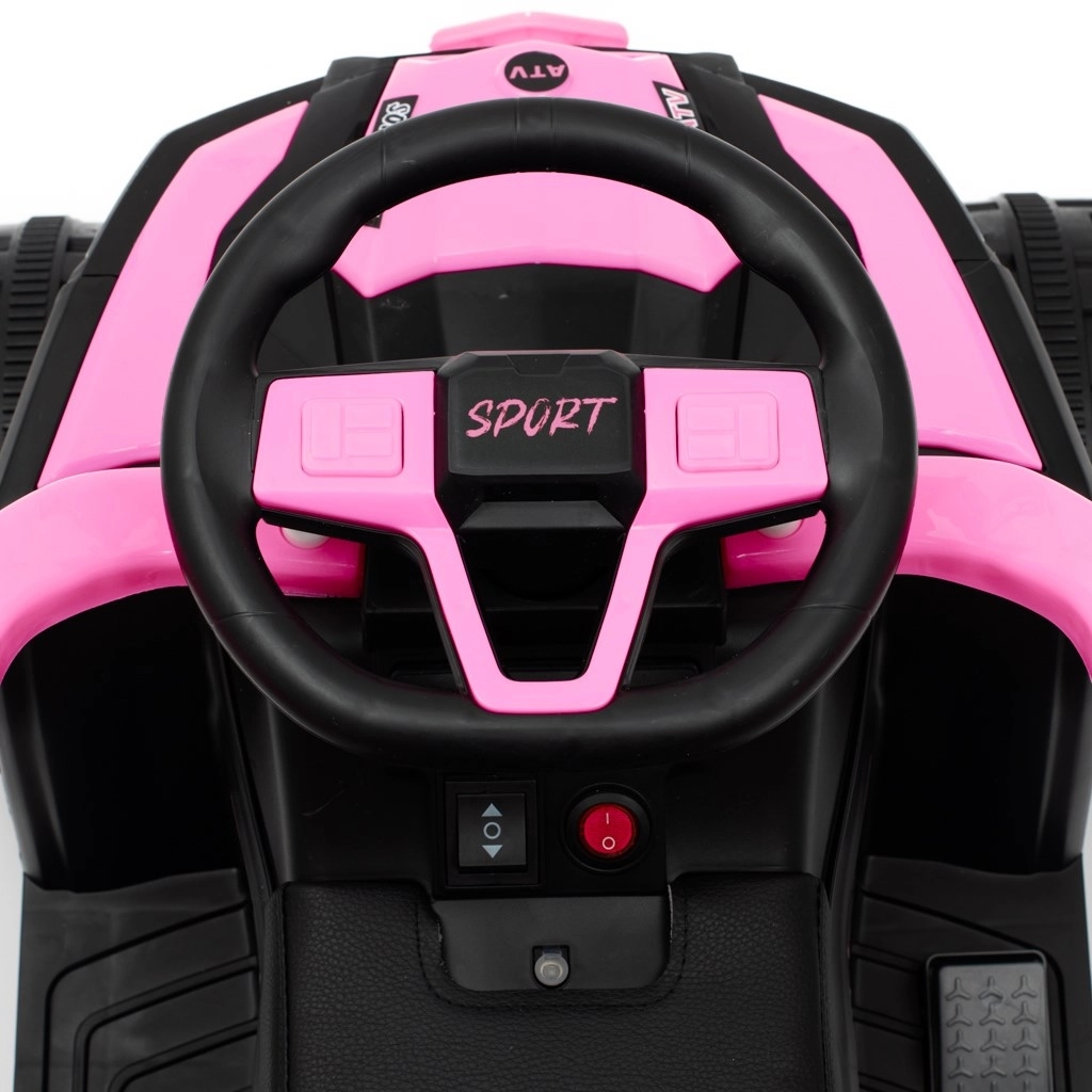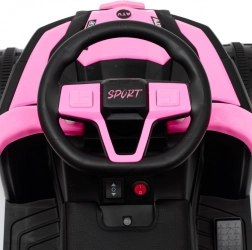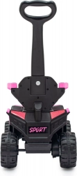 Stilsko dječje električno guralo Baby Mix Ruggy u boji baby pink spaja električni pogon 18 W, stabilan off-road izgled i sigurno upravljanje s upravljačkom šipkom. Ergonomsko sjedalo od eko kože, velika kola i izdržljiva konstrukcija osiguravaju udobnu vožnju i na neravnom terenu, dok roditelji imaju kontrolu zahvaljujući visokoj ručki.