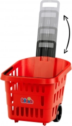 Ova crvena kolica za kupovinu za djecu vjerno oponašaju pravi trgovački koš i potiču kreativnu igru prodavača i kupca. Konstrukcija je lagana, ali čvrsta i izdržljiva, pa kolica podnose svakodnevne kućne “kupnje” i duge sate igre.