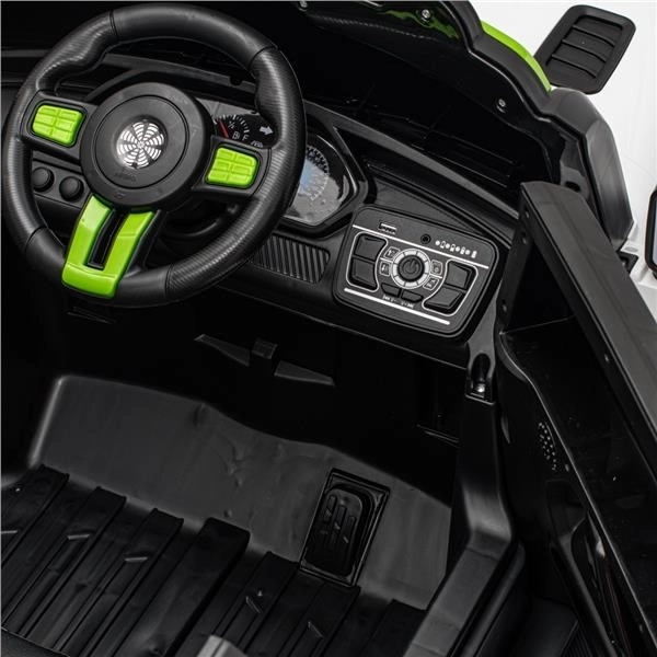 Snažna 12V baterija napaja dva 45W motora koja zajedno sa soft start funkcijom omogućuju glatko pokretanje bez trzanja. Za sigurno upravljanje na raspolaganju su nožna kočnica i postavke 3 brzine. Roditelji će cijeniti daljinsko upravljanje 2.4G, dok će djeca uživati u LED osvjetljenju, ugrađenim pričama i glazbi te mogućnosti povezivanja vlastitih datoteka putem USB-a.