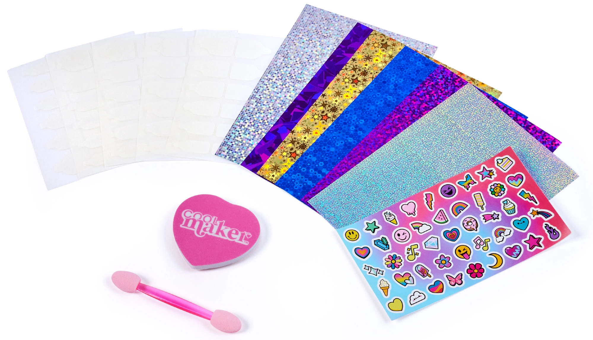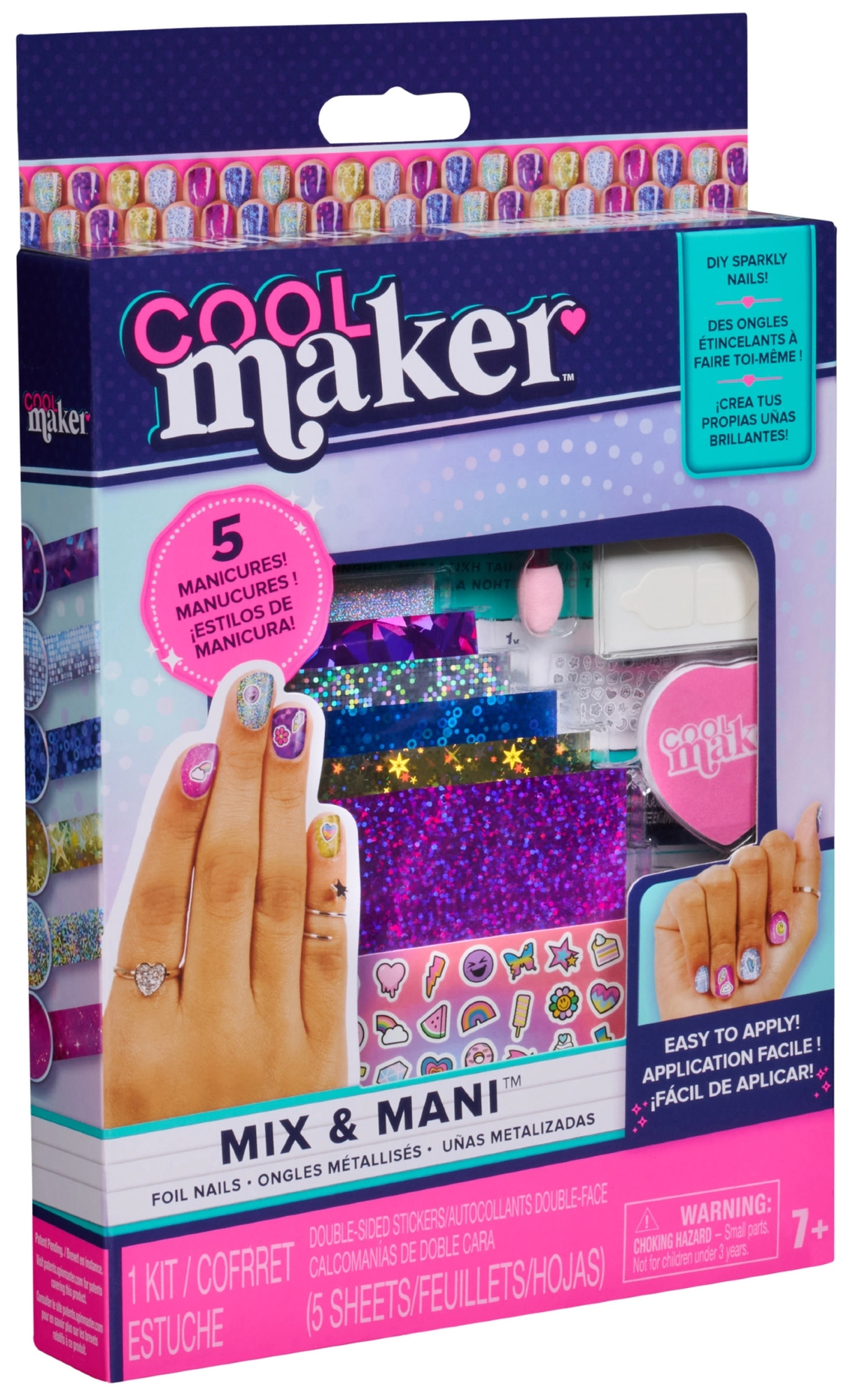 Kreativan dodatak za male stilistice brenda Spin Master: Cool Maker Mix & Mani je mali dodatni set za ukrašavanje noktiju koji nudi jednostavno i zabavno stvaranje. Dovoljno je postaviti šablonu s ljepilom, pritisnuti odabrani uzorak, zalijepiti naljepnicu i gotovo je. Uzorke je lako promijeniti i početi ispočetka, pa je beskrajna kreativna zabava zajamčena.
