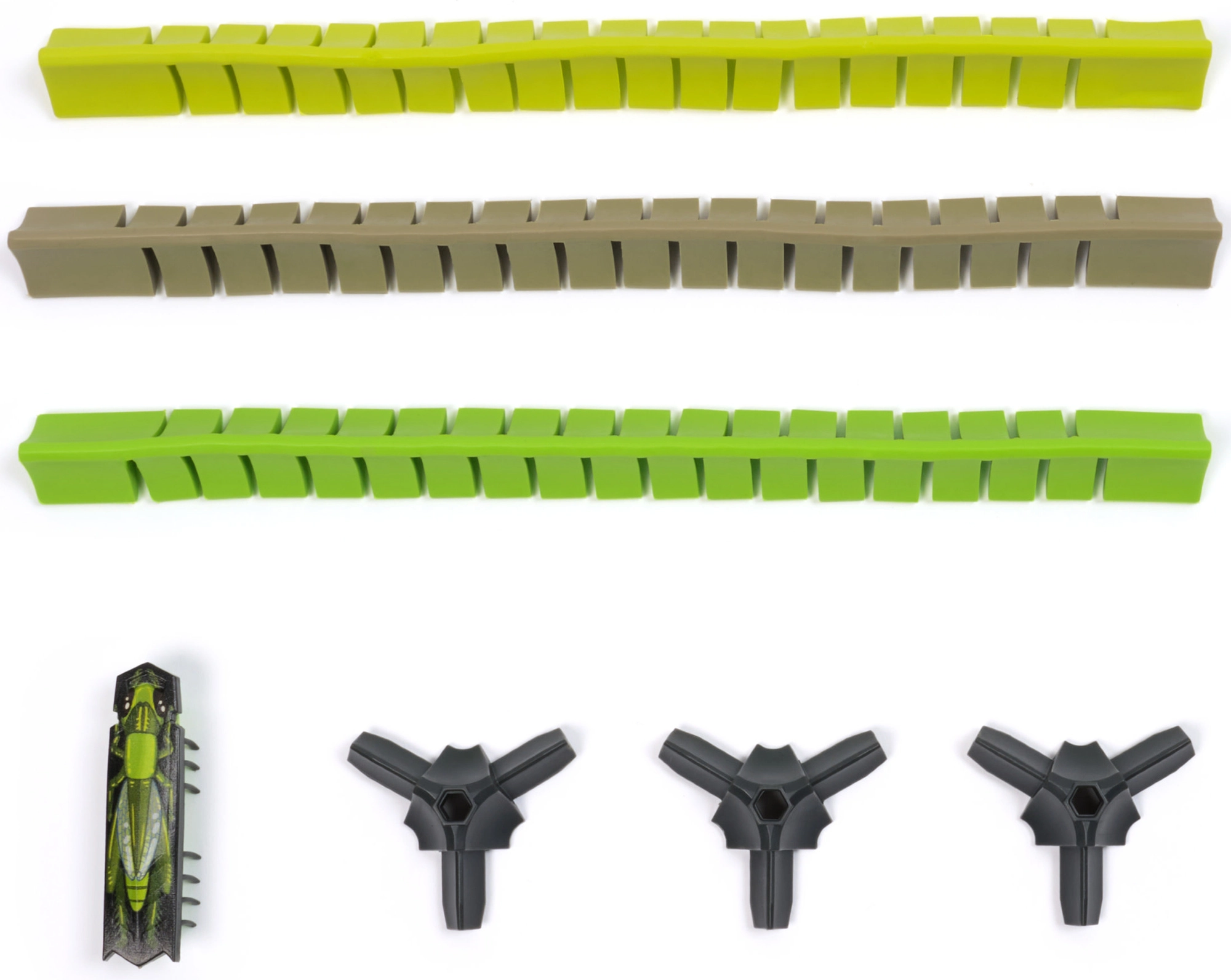 Spojni dijelovi omogućuju brzo „klik” spajanje i sigurno vođenje kukca po stazi. Segmenti su elastični i savitljivi, pa možete graditi ovale, zavoje i labirinte. Set se može proširivati dodatnim stazama i kukcima HEXBUG za još više akcije.