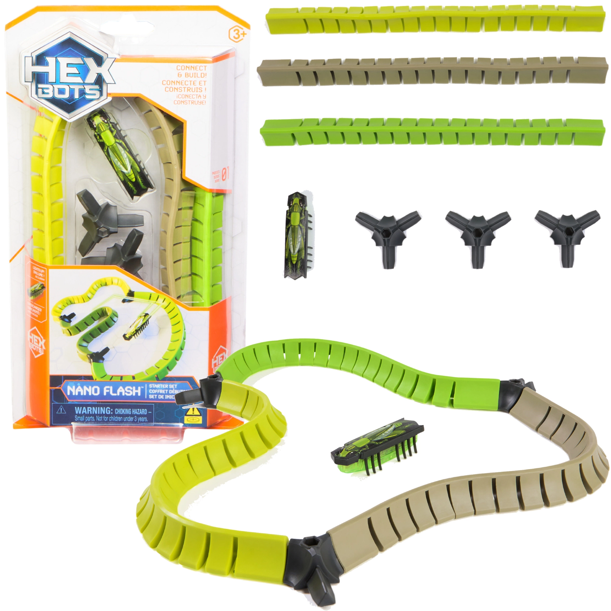 Startni set HEXBUG NANO FLASH donosi brzog mikro robotića u obliku kukca i modularnu stazu koju lako složite u različite oblike. Zahvaljujući vibracijama kukac se samostalno kreće, bljeska plavim svjetlom i realistično se trese poput pravog kukca – savršeno za zabavu i istraživanje.