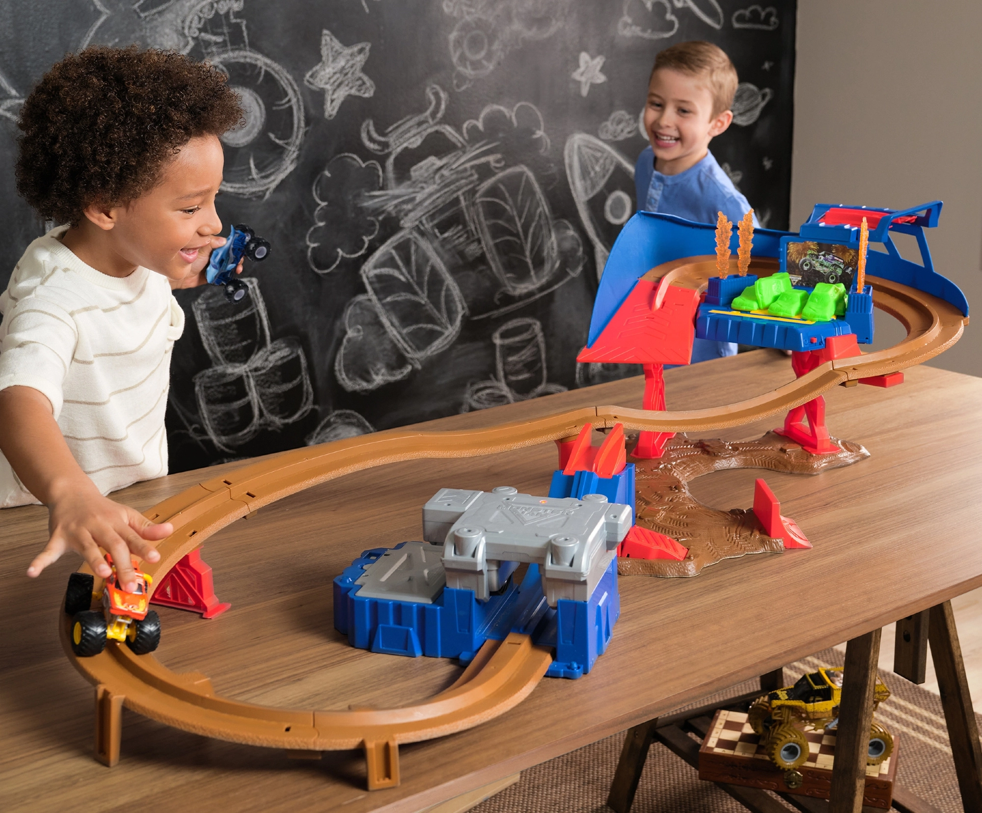 Snažan launcher izbacuje truckove u akciju kako bi sigurno savladali skokove, usponе i oštre zavoje – idealno za utrke dvaju vozila.