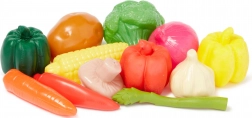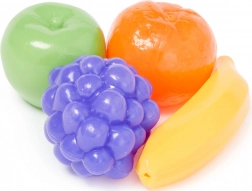 Plastično voće i povrće, dopunjeni minijaturnim kutijicama i konzervama, izgledaju kao pravi. Djeca će lako prepoznati bananu, grožđe, kukuruz, papriku ili šampinjon i naučiti nazive uobičajenih namirnica.