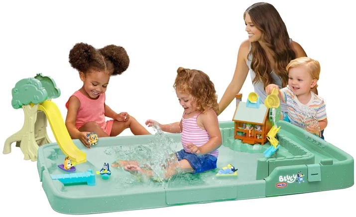 Otkrijte vodenu zabavu s dječjim setom BLUEY Bushland Adventures od Little Tikes. Prostrani stol za igru s vodom nudi tobogan, kućicu s vodenim kolom i kanaliće za protok vode. U kompletu su 4 plutajuće figurice Bluey i pametni dodaci za nalijevanje i brane. Izdržljiva plastična konstrukcija, jednostavno čišćenje i brzo sklapanje za prenošenje osiguravaju praktičnu upotrebu kod kuće i u vrtu.
