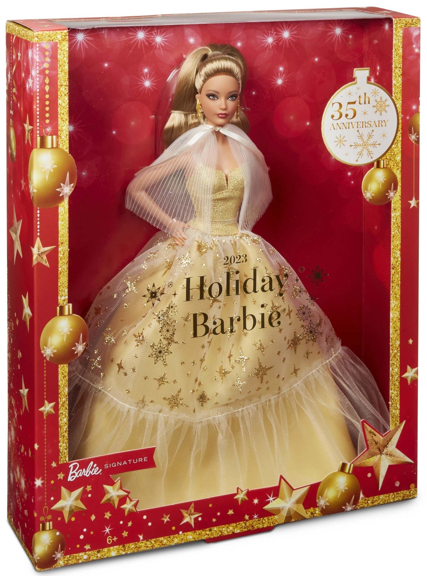 Ovo iznimno kolekcionarsko izdanje slavi 35 godina kultne Barbie linije. Lutka očarava sofisticiranim izgledom: nešto tamnija plava kosa, bistre smeđe oči i izraz lica naglašavaju njezin zreli karakter. Elegantne zlatne naušnice i crveni nokti zaokružuju svečani stil.